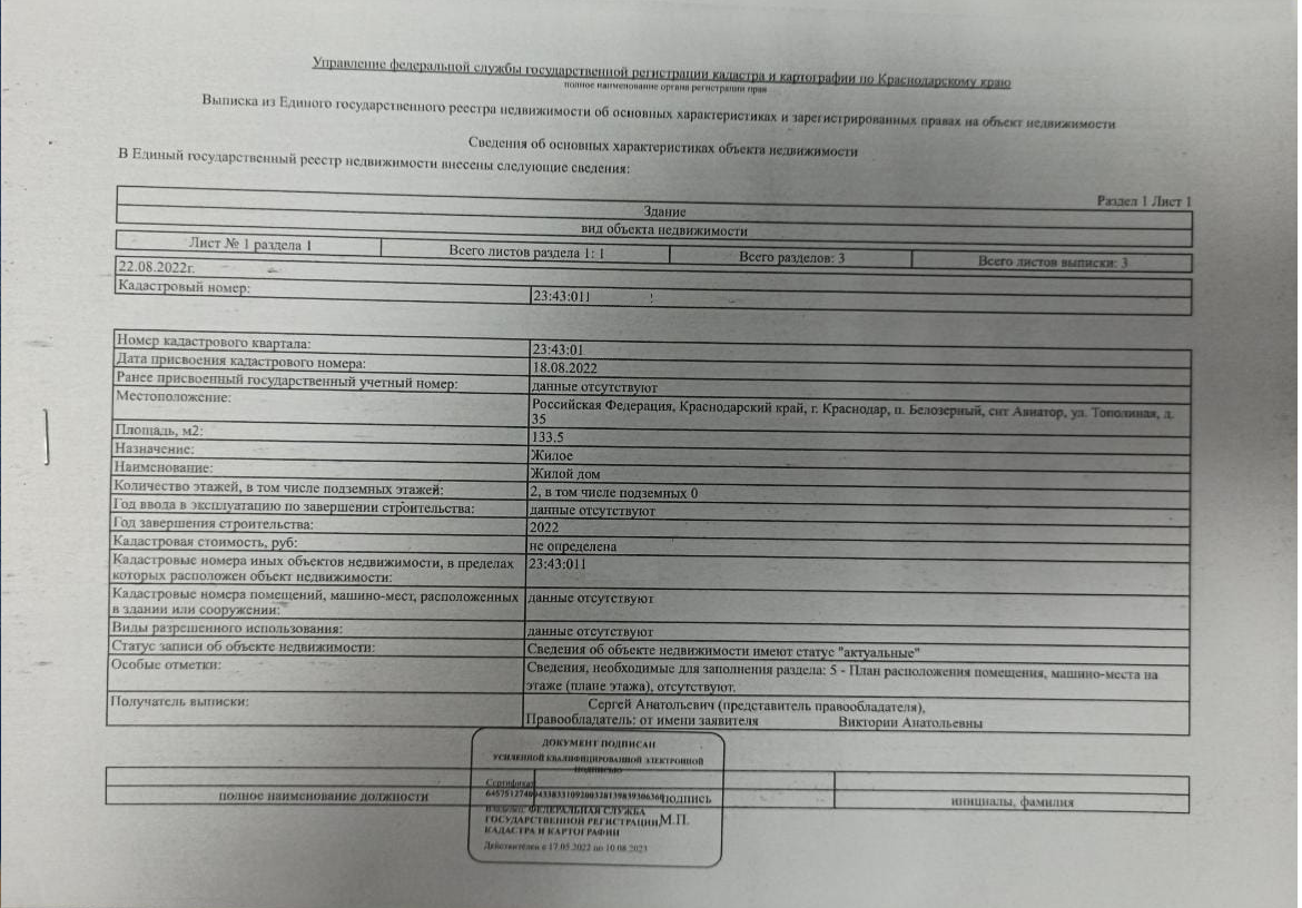 Продается новый дом в жилом СНТ "Авиатор" ул. Тополиная с пропиской г. Краснодар Прикубанский округ. Один собственник, без обременений, задумывался и строился нами для нашей семьи, но... изменились планы. Дом для ПМЖ без дополнительных вложений в стройку и инженерку. Запланированные работы завершены, но можем отделать по договору до любой степени готовности, что идеально под ипотеку. Сделаны предчистовая отделка до огрунтованного ГКЛ и ровного пола, натяжной потолок с точечными светильниками, лестница правильная, разводка всех труб и электрики (щиток готов, все розетки/выключатели на своих местах и работают, включая и уличное освещение). Строим "сами" - отец (монолитчик и прораб, стаж 40лет), брат (профи по лестницам и каркасу) и мы сотоварищи. Выставляю на продажу сегодня без финишной отделки потому что считаю, что дом должен отделываться для конкретной семьи.