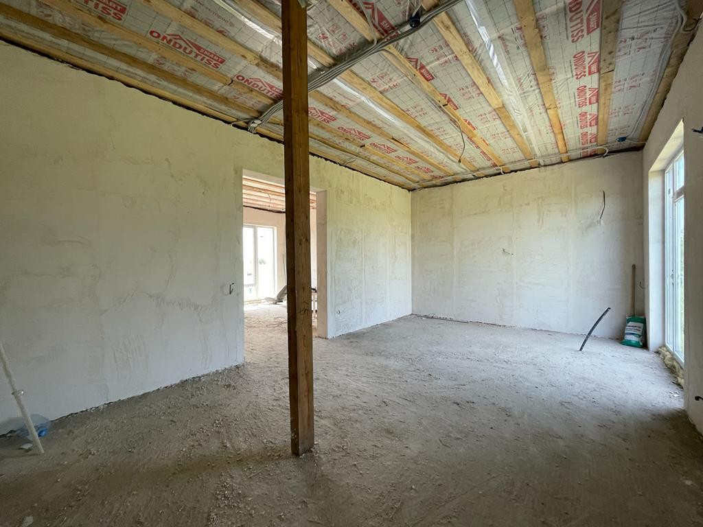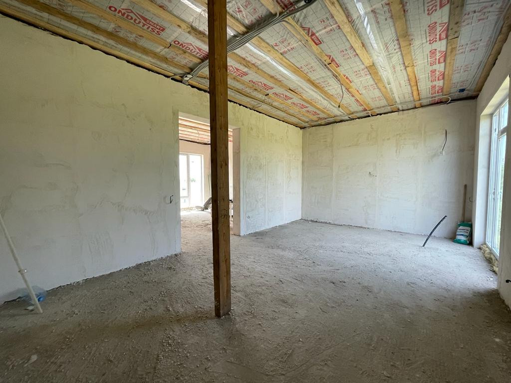 Дом на данный момент одноэтажный, с возможностью увеличения, подготовлено место под лестницу. Качественная предчистовая отделка, разводка электричества, новые окна и двери, утеплена крыша, покрытие мягкая кровля. В доме две комнаты, санузел.