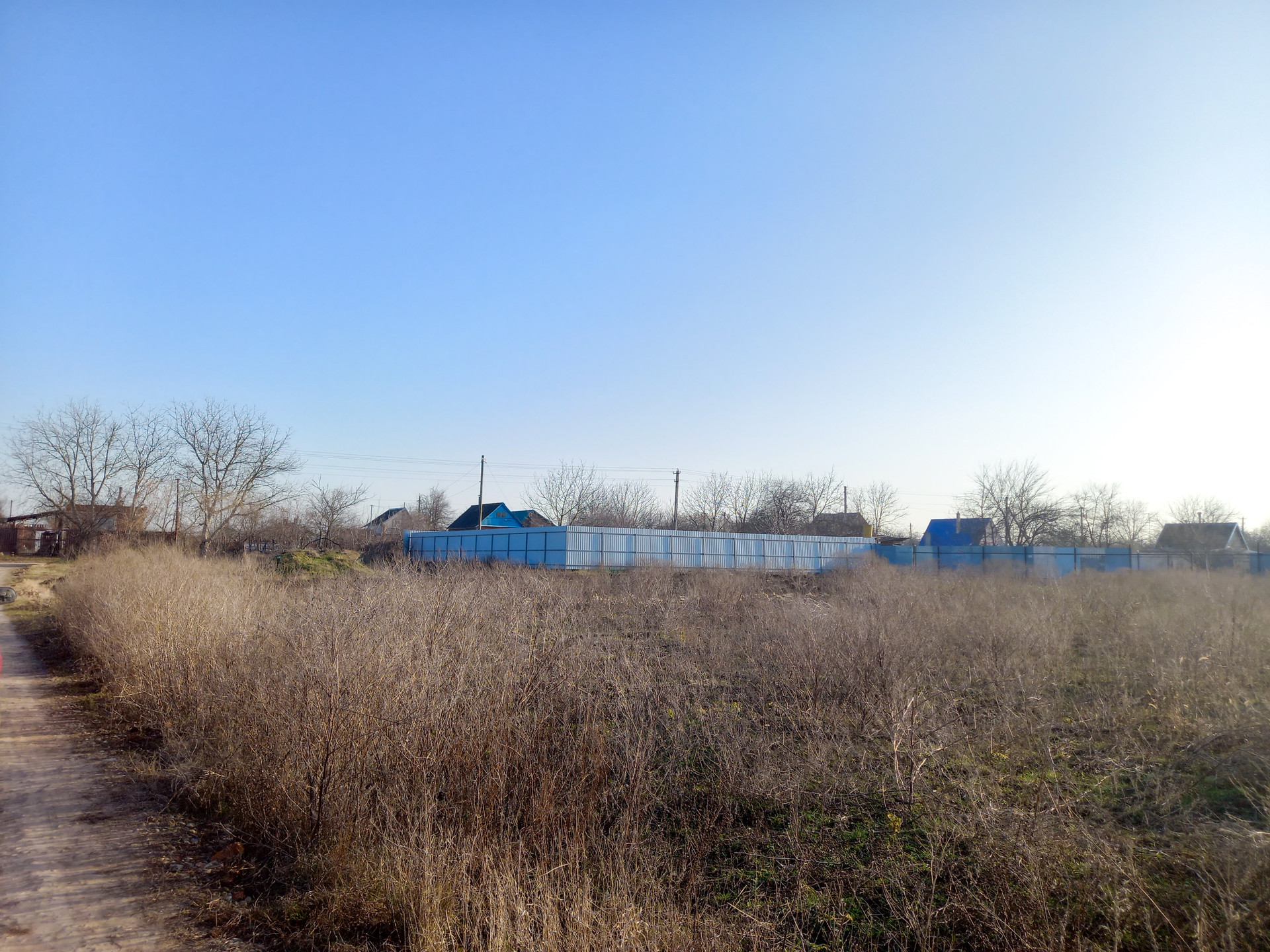 Фасад  - 20 метров. Участок частично огорожен. Рядом строятся новые дома, соседи проживают круглогодично.