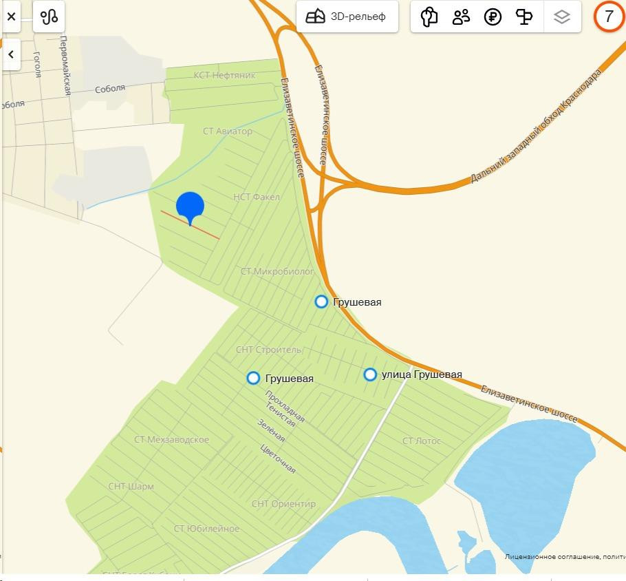 Большой земельный участок 8 соток правильной формы, фасад 20 метров, расположен в садовом товариществе Авиатор. Подойдет под застройку двух домов с разными заездами. К участку ведет хорошая подъездная дорога, в пешей доступности остановка общественного транспорта, рядом станица Елизаветинская до центра Краснодара 15 км.