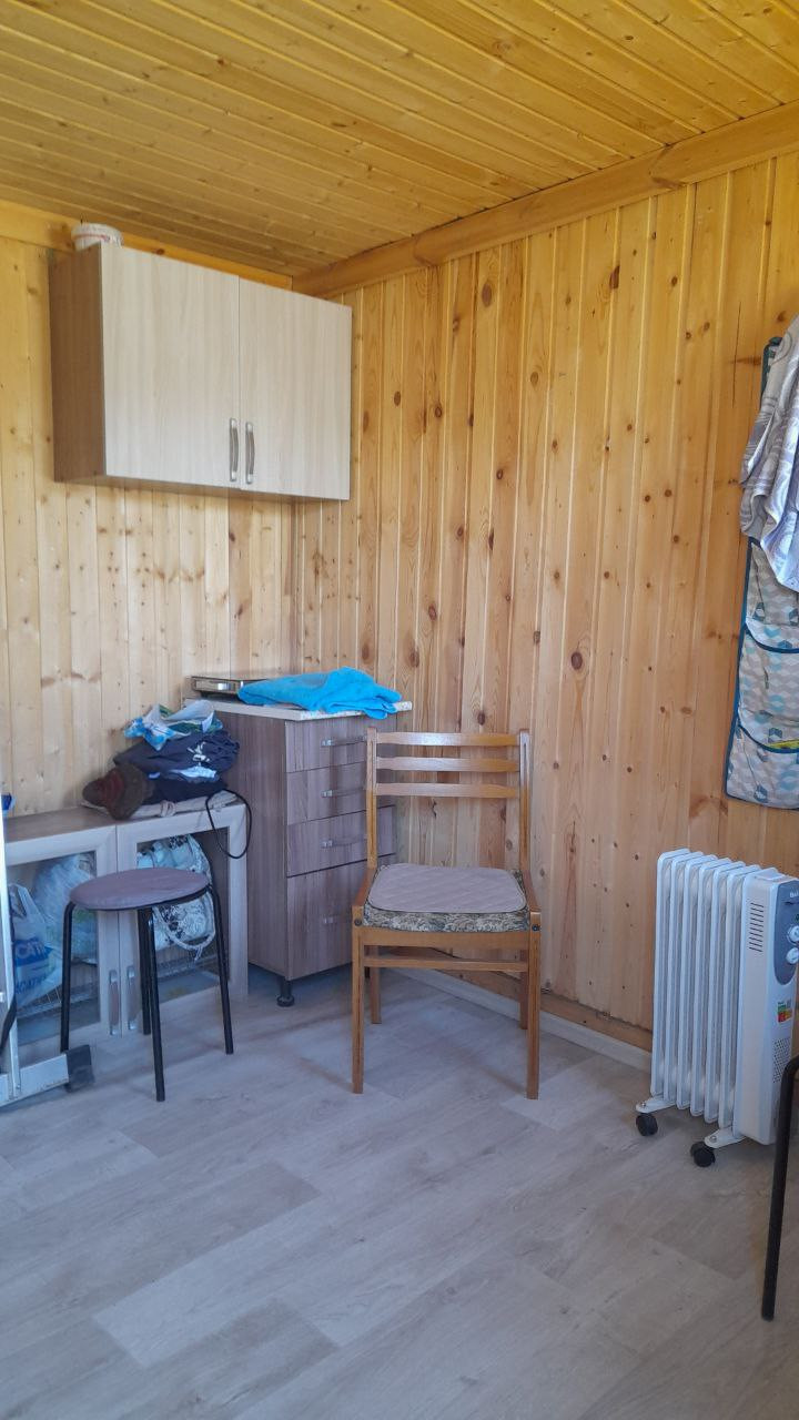 Участок огорожен забором из профлиста. По границе участка только одни соседи. Имеется уличный сан. узел с техническим блоком. Стоит утепленный щитовой домик 3х3 м с мансардой и баня из бруса(приезжали до глубокой осени и зимой до -10 градусов вполне комфортно). Подключено и разведено электричество, оплачен газ(подведен до границы участка), дополнительно есть летний водопровод.