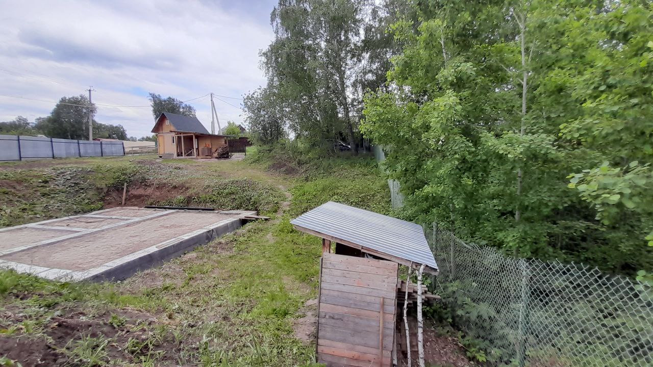 2 года назад залит ленточный фундамент 8х9 под дом(по плану дом должен быть с цоколем), в прошлом году в угол выведен шланг с круглогодичным водопроводом из скважины. Поставлен септик 2-х камерный переливной из бетонных колец(труба слива доведена до границы фундамента). Есть возможность подключить кабельный интернет.