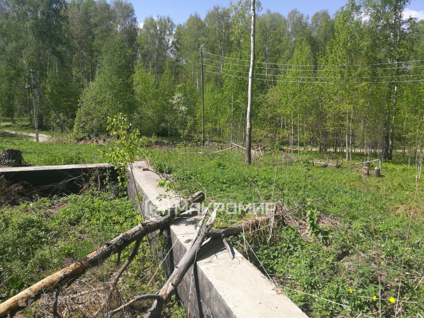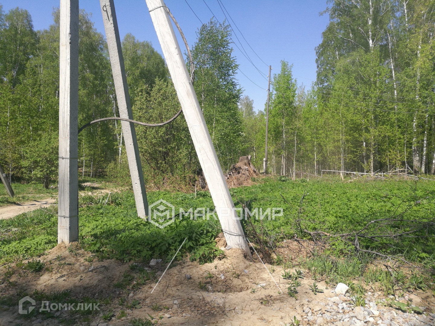 На границе участка находится столб с возможностью подключения электричества.