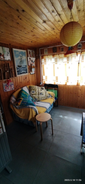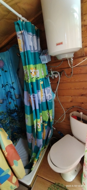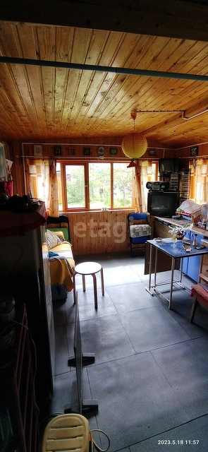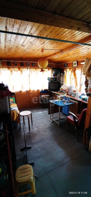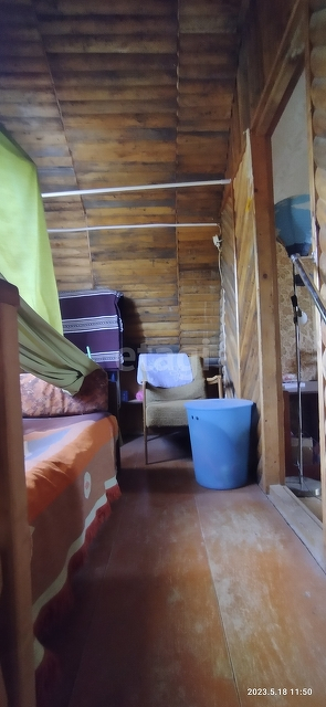 Сам дом очень уютный и в хорошем состоянии. На первом этаже отдельная комната, большая кухня-гостиная, где есть раковина и установлен водонагреватель и небольшая гардеробная. На второй этаж идет очень удобная лестница, откуда вы попадаете в небольшой холл с окном и кроватью, а далее идет комнатка. Стены в доме отделаны деревом, крыша новая металлическая, снаружи дом отделан сайдингом.