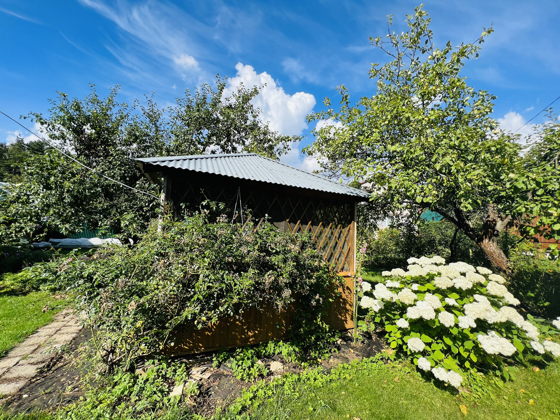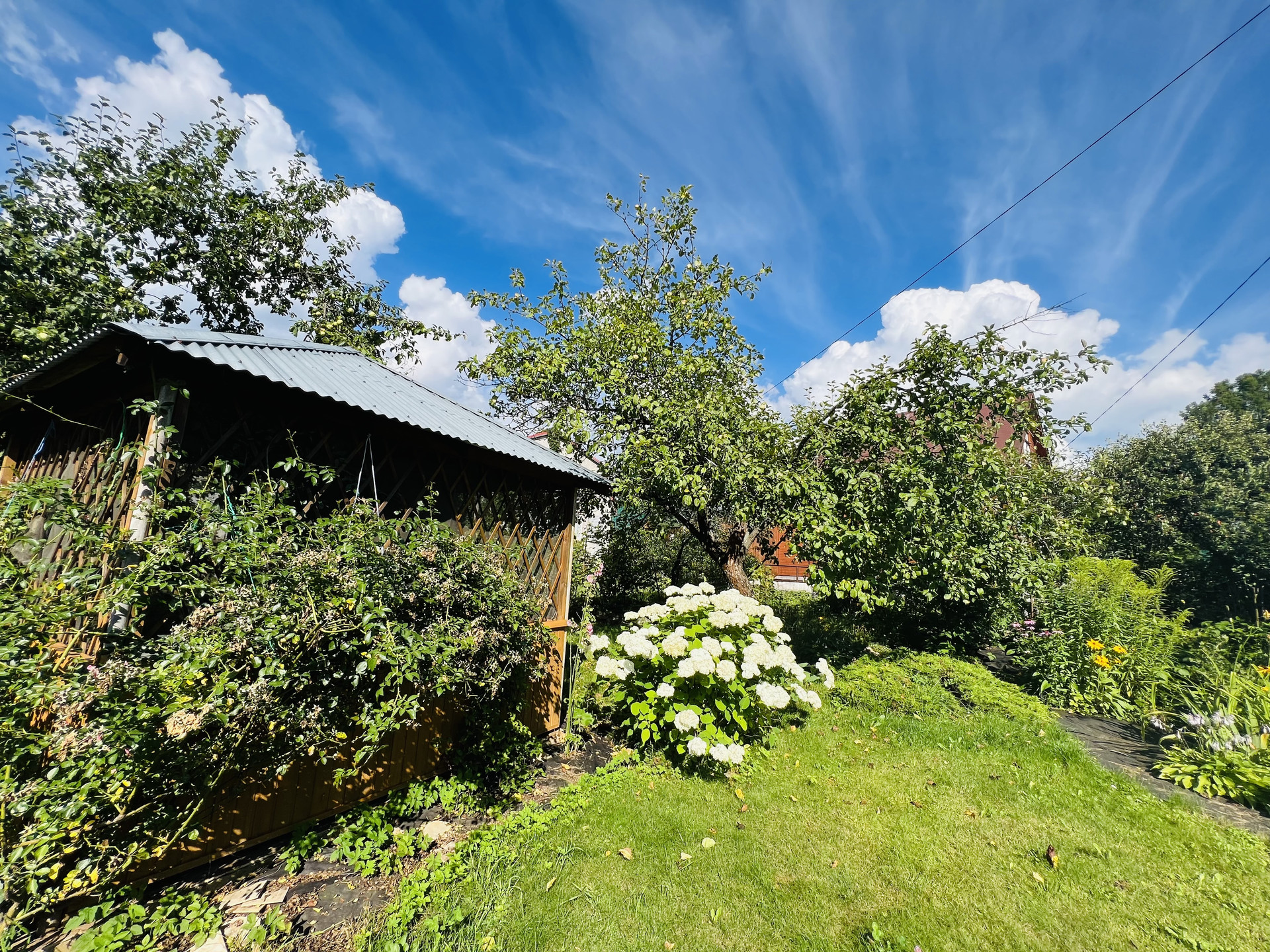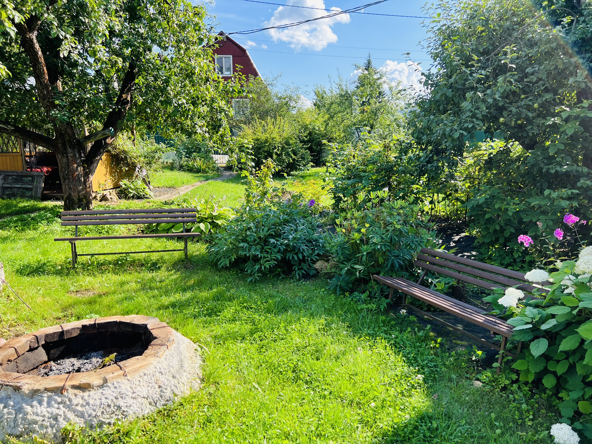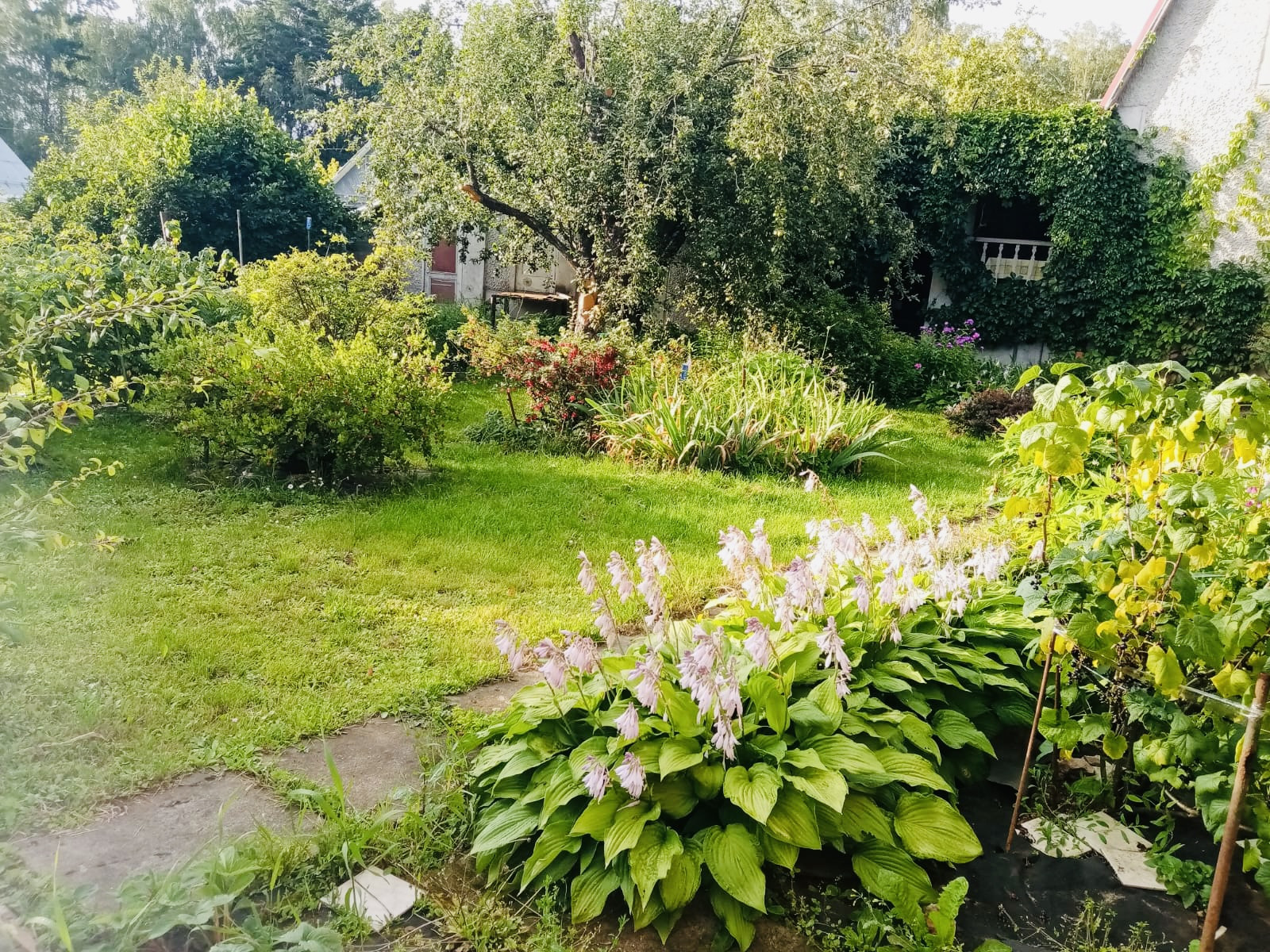 Ровный участок поразит вас обилием зелени, многолетних цветов, кустарников и плодовых деревьев. У вас есть шанс уже в этом году собрать свой урожай.