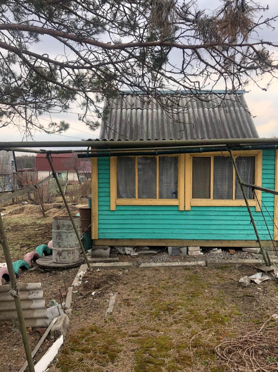 Из удобств: 2 контейнера, прогулочная площадка, рядом водоем, имеется инвентарь, насос, шланги, укрывной шатер.