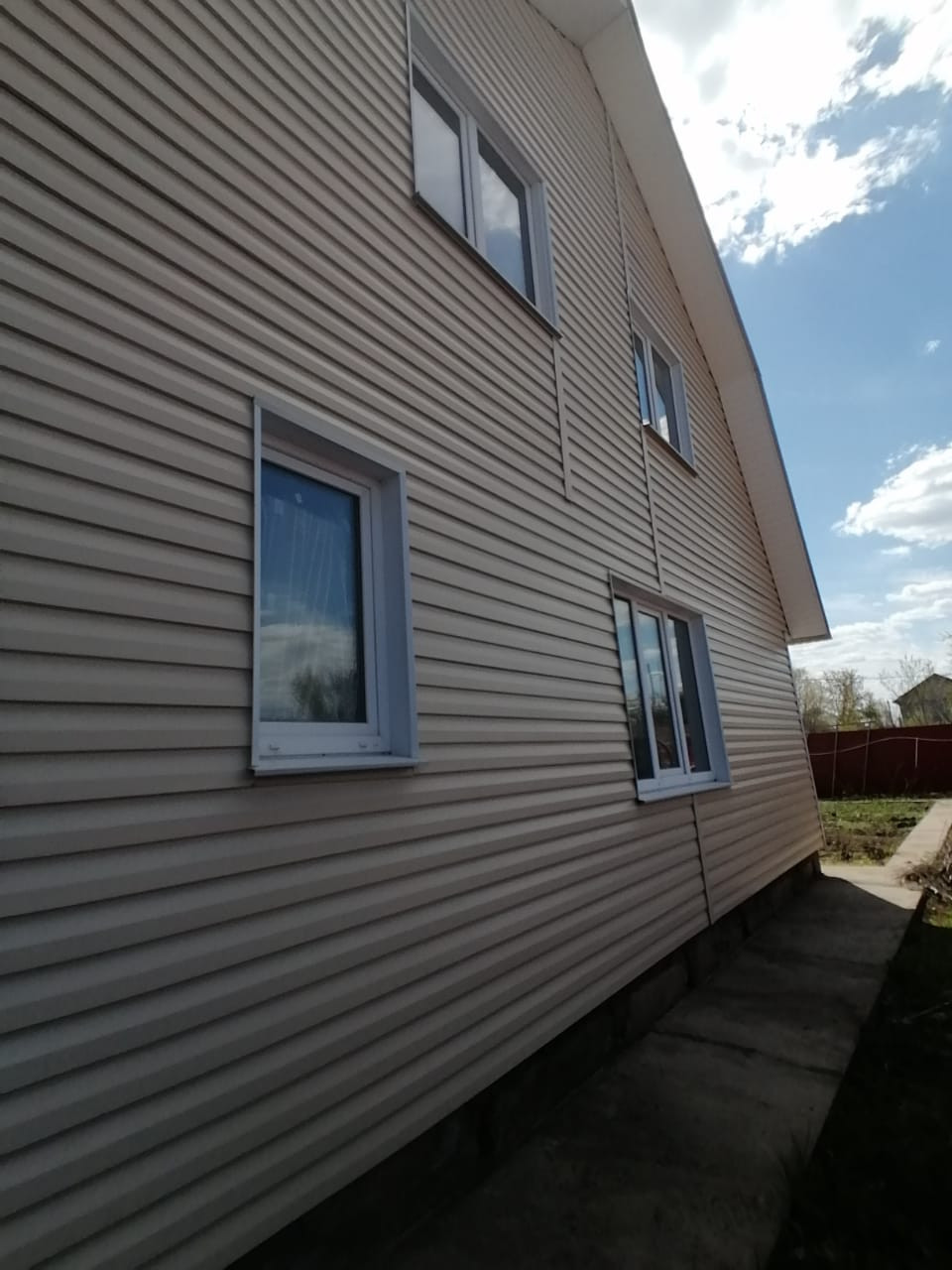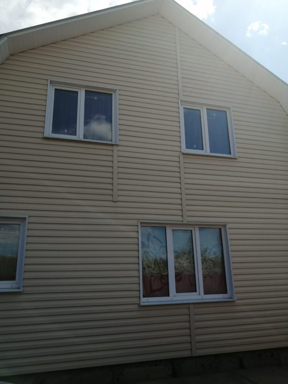 Материал стен: брус+утеплитель+металлосайдинг. По периметру первого этажа теплый пол.
