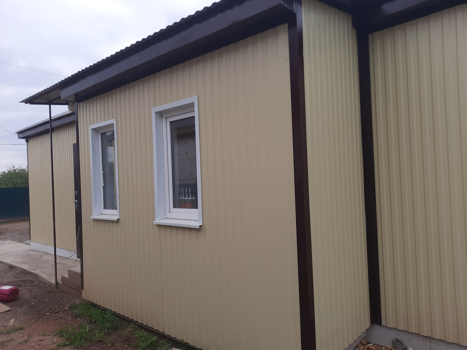 Материал стен керамзитоблок +утеплитель 80 мм. ,с наружи дом обшит профлистом.