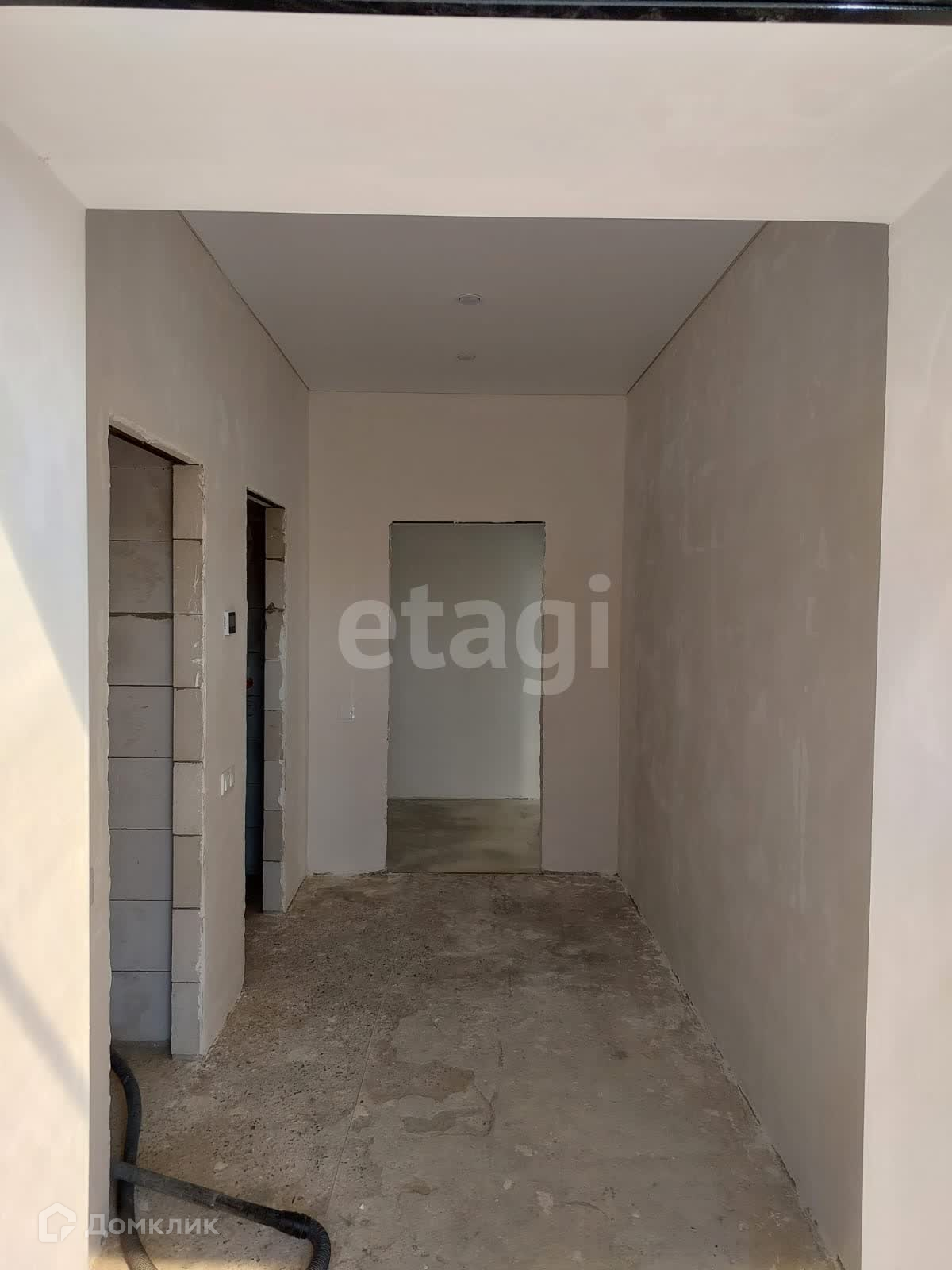 Внутреннее пространство дома включает просторную кухню-студию и еще 3 комнаты, разделенные коридорами, что обеспечивает комфорт и уединение для вашей семьи. Ванная комната и туалет разделены и могут быть завершены под чистовую отделку по вашему вкусу.