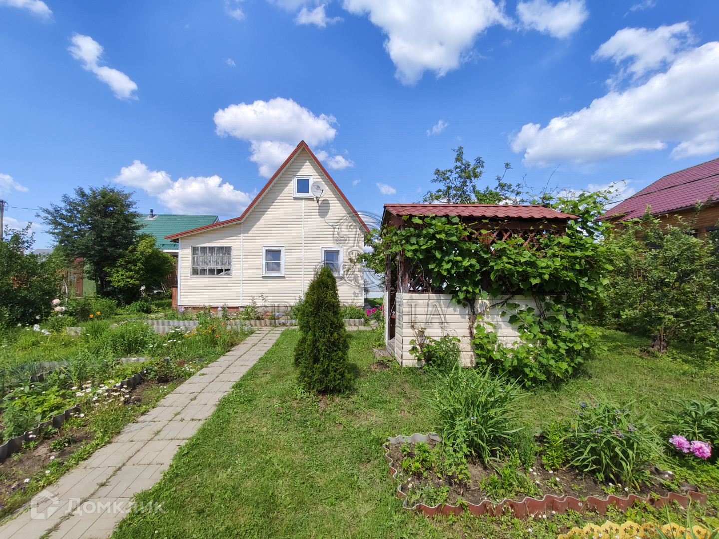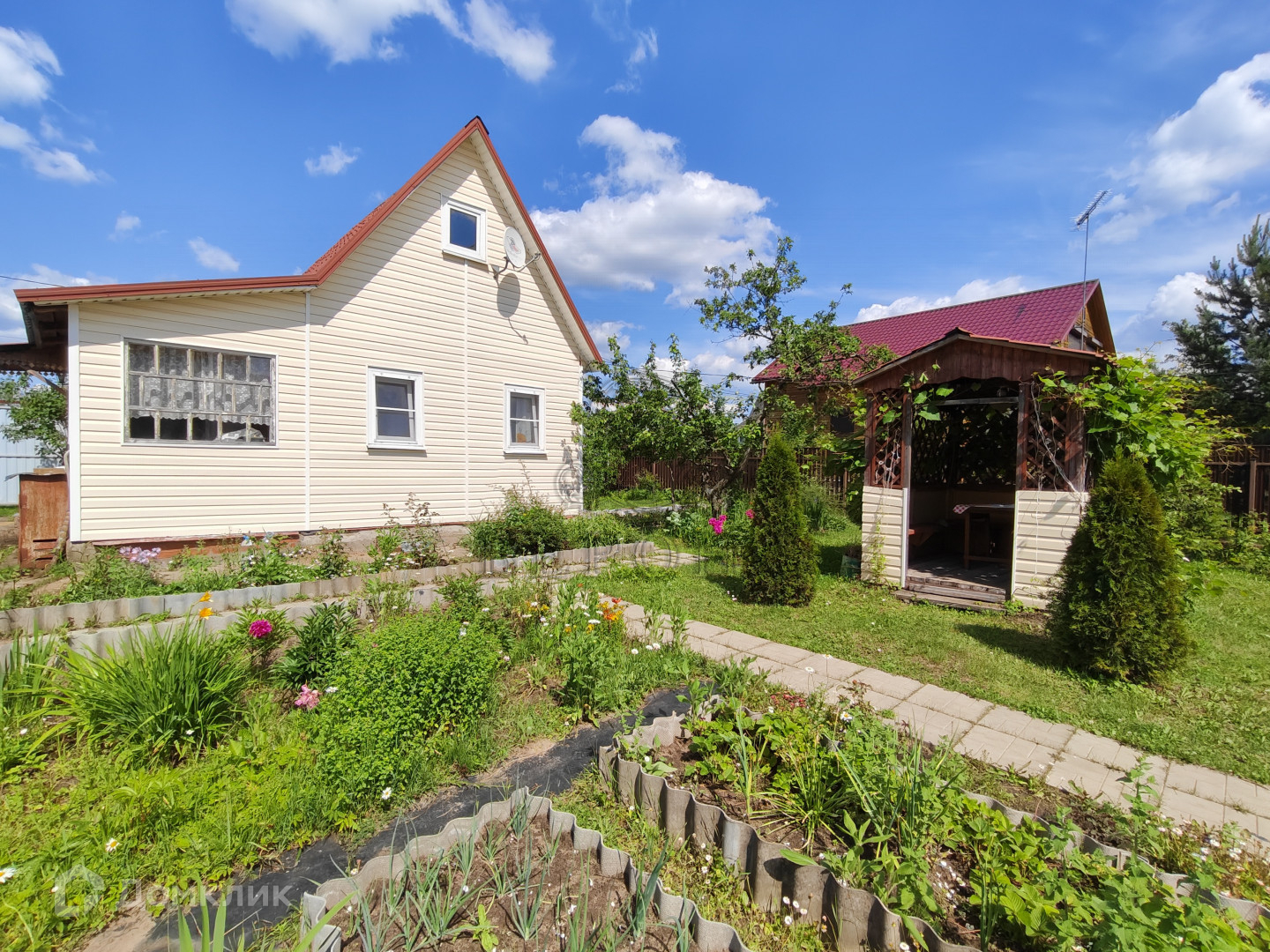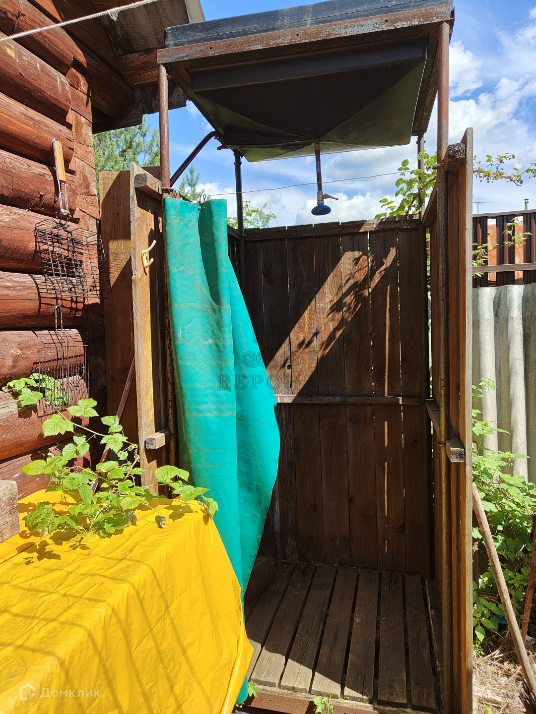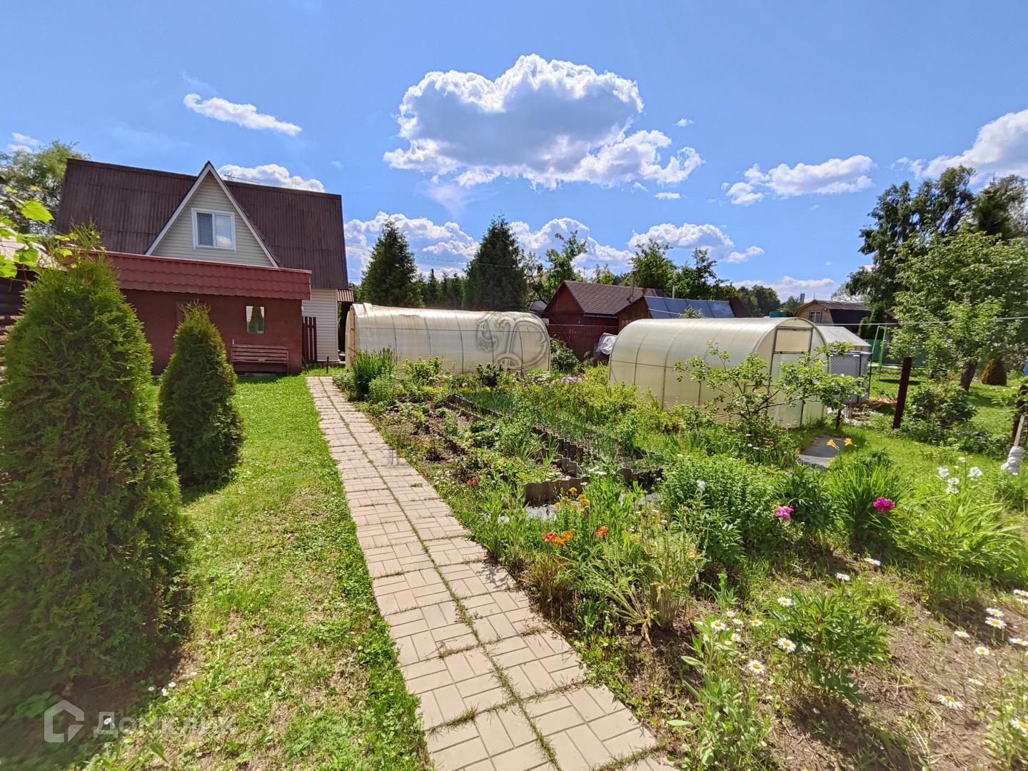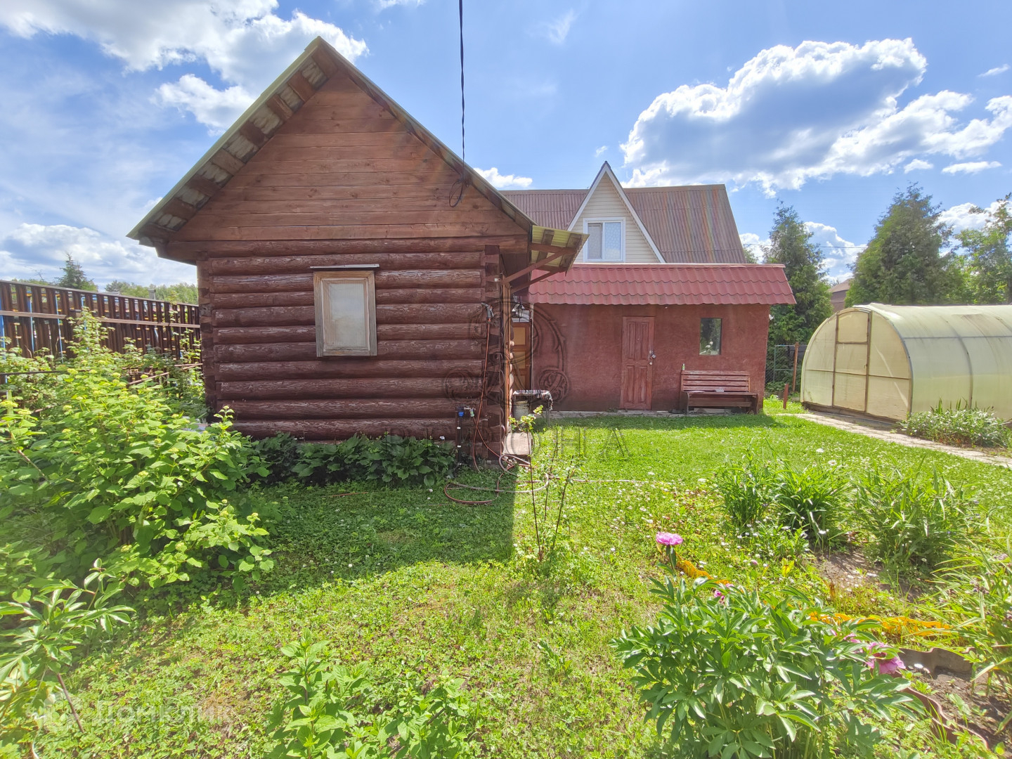 На участке располагаются баня 12м² с комнатой для отдыха и отдельной душевой кабиной , две теплицы, беседка, хозблок, летний душ, туалет.
