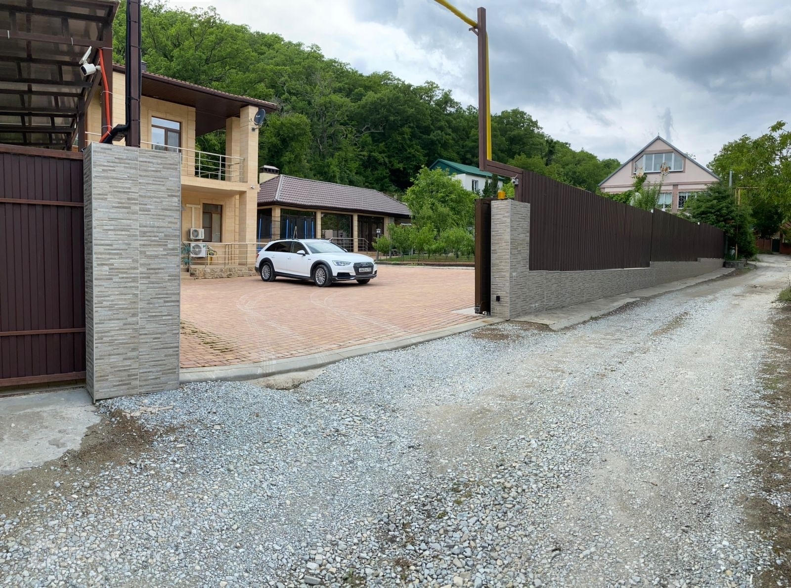 Тёплый пол, газ, система видеонаблюдения, сигнализация, система очистки воды, автоматические ворота, скважина.