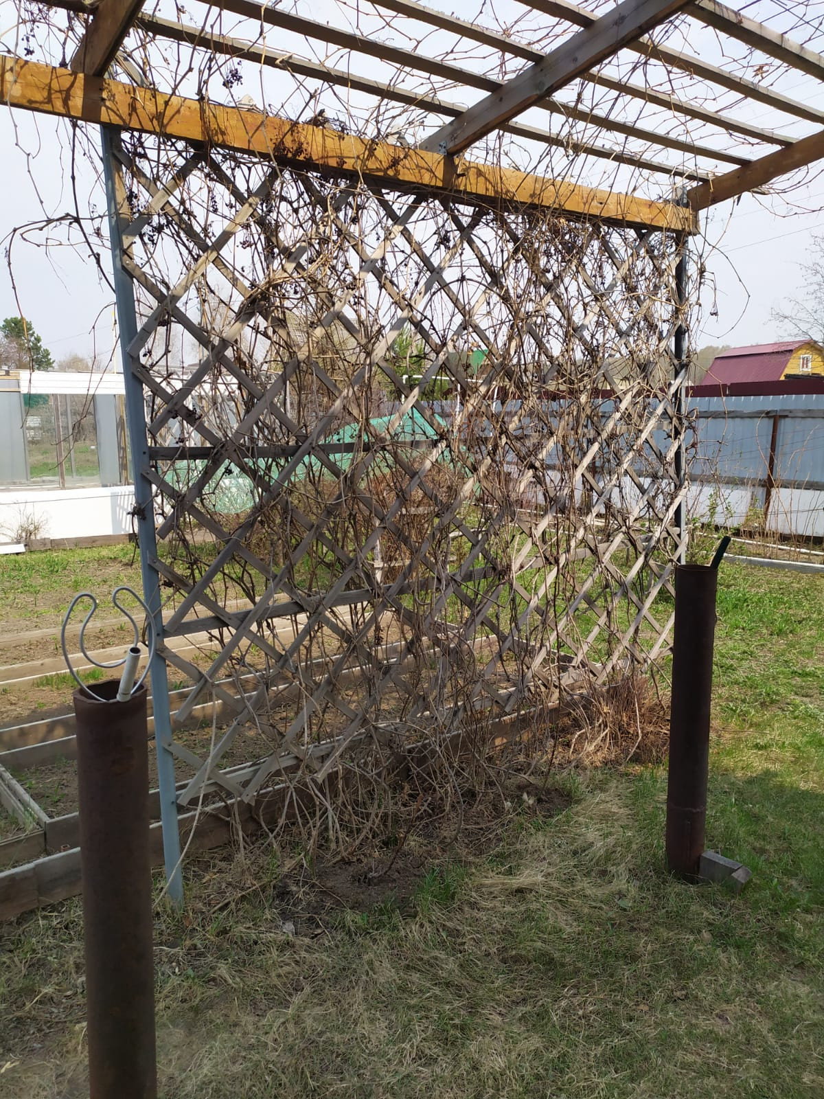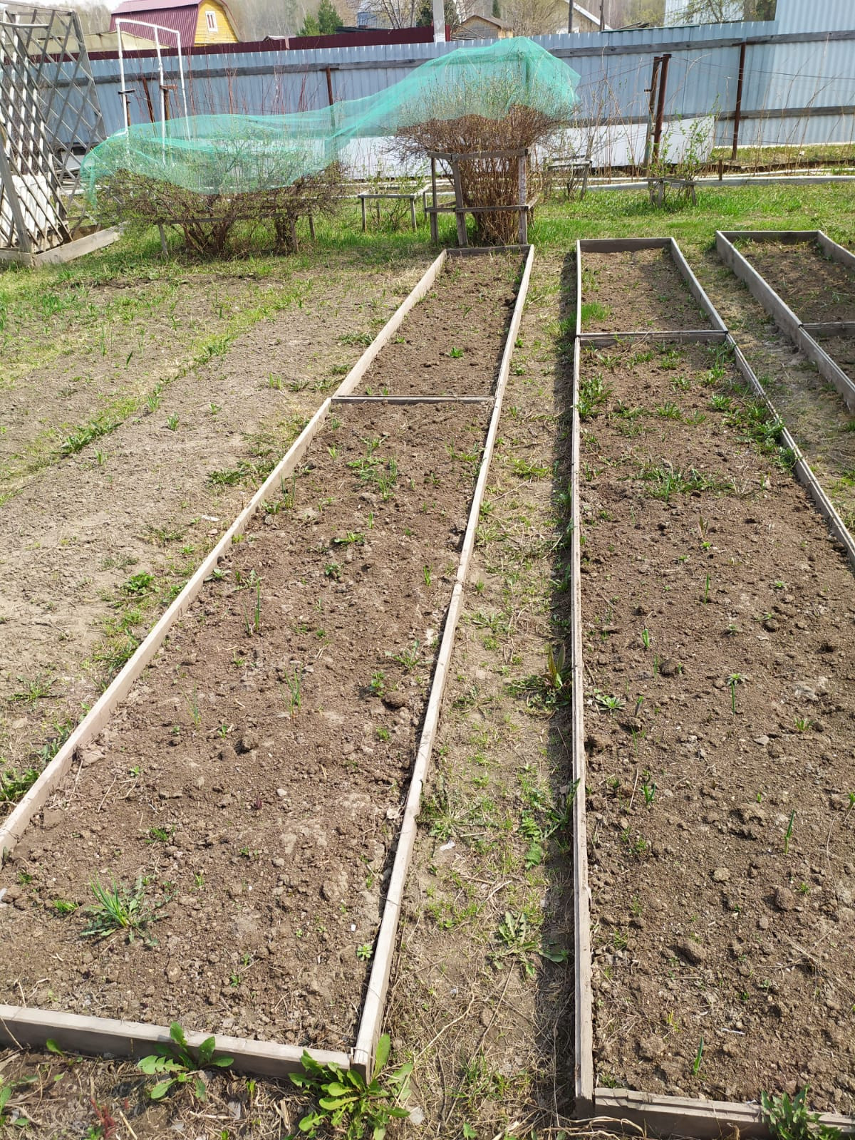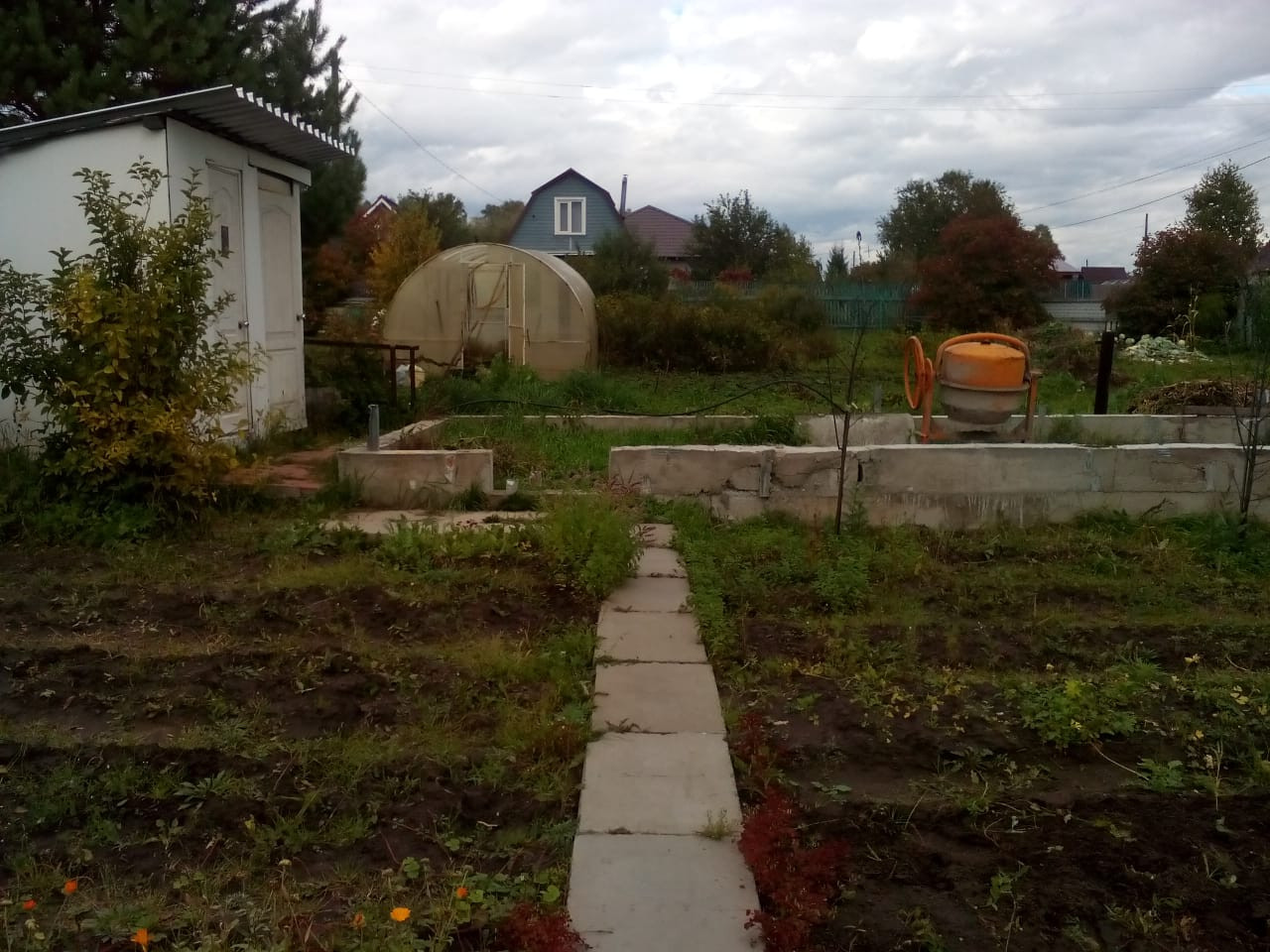 Посадки: две сливы, две яблони, жимолость, вишня, малина, виноград, клубника,смородина, черноплодная рябина, крыжовник. В теплице сделан капельный полив.