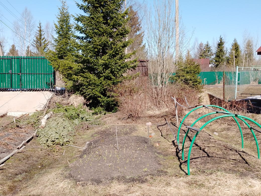 На участке есть посадки: груша, яблоня, кусты крыжовника, красной и черной смородины, малины, жимолости.