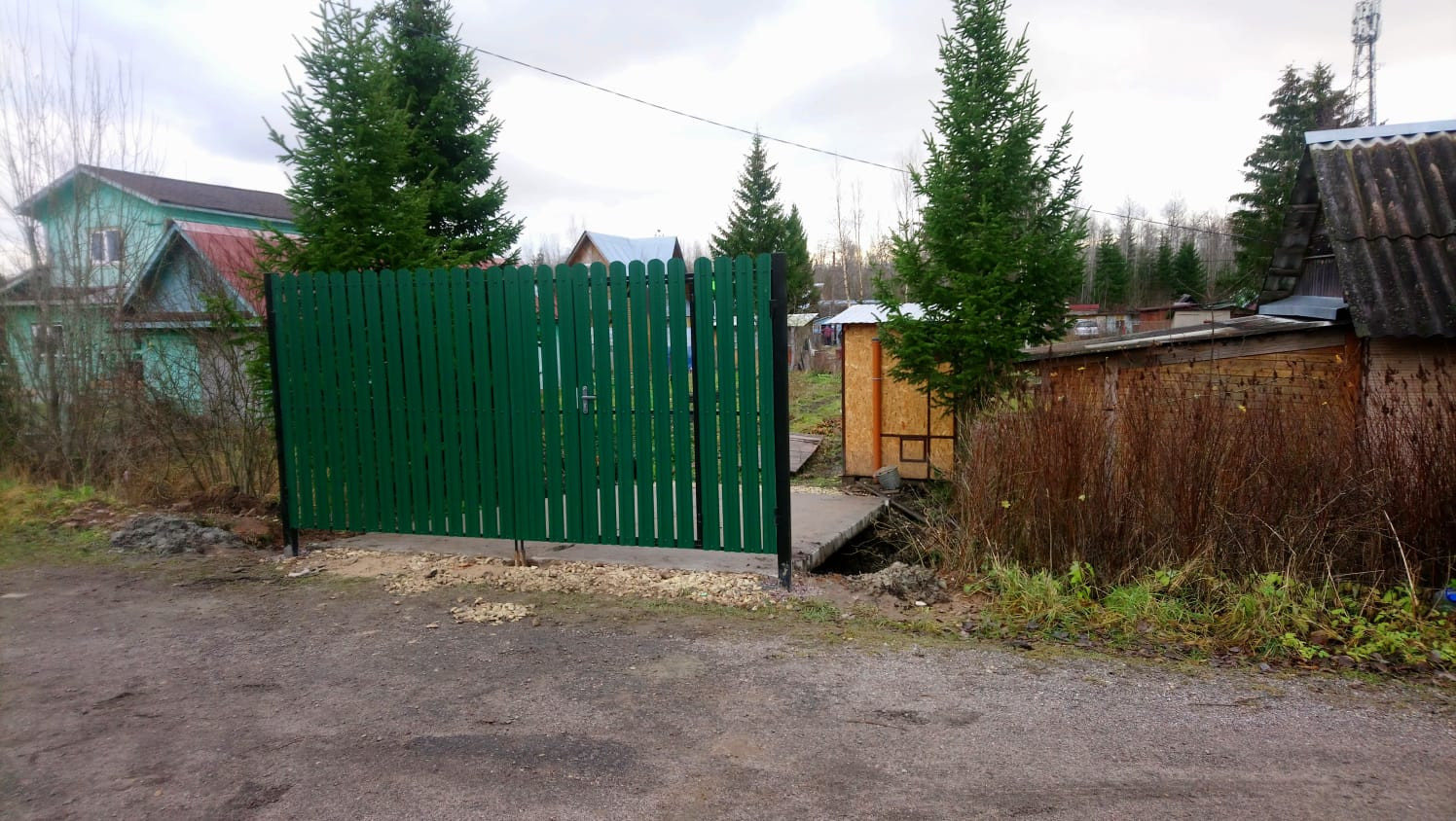 Ворота новые, металлические. Въезд на участок осенью 2021 года выложен ж/б плитами.