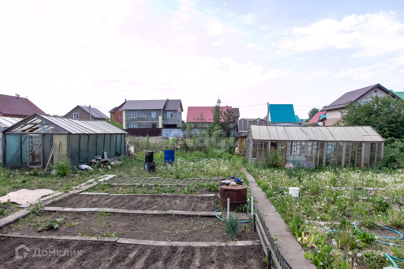 Закрытая территория, на въезде установлены ворота. Два подъезда в общество со стороны города. Прекрасные, спокойные соседи. Дороги зимой чистят. Участок ровный, огорожен, разработан, фруктово-ягодные посадки, 2 теплицы.