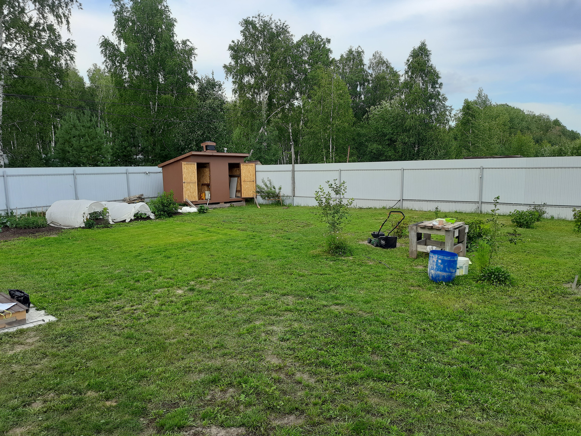 Электричество присутствует, водопровод центральный сезонный. Новая печь 2023 г. Освещение участка в три прожектора. Участок высокий, ровный, весной не топит. Большая часть газон, остальное занимают деревья, кусты и ягоды, в 2023 году отсыпали часть под грядки. Широкие ворота с калиткой (4м). Туалет, душевая (бак с подогревом), раковина, хоз. блок ( строение 4м х 2.5м). Летом можно купаться на старице, ходить в лес за грибами и ягодами.