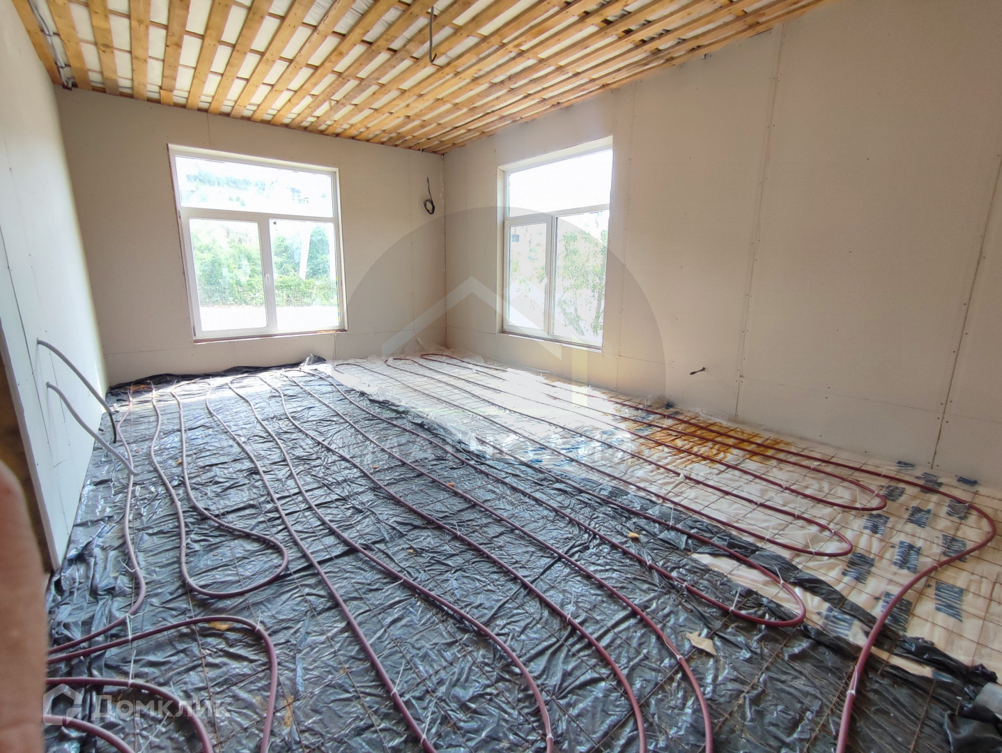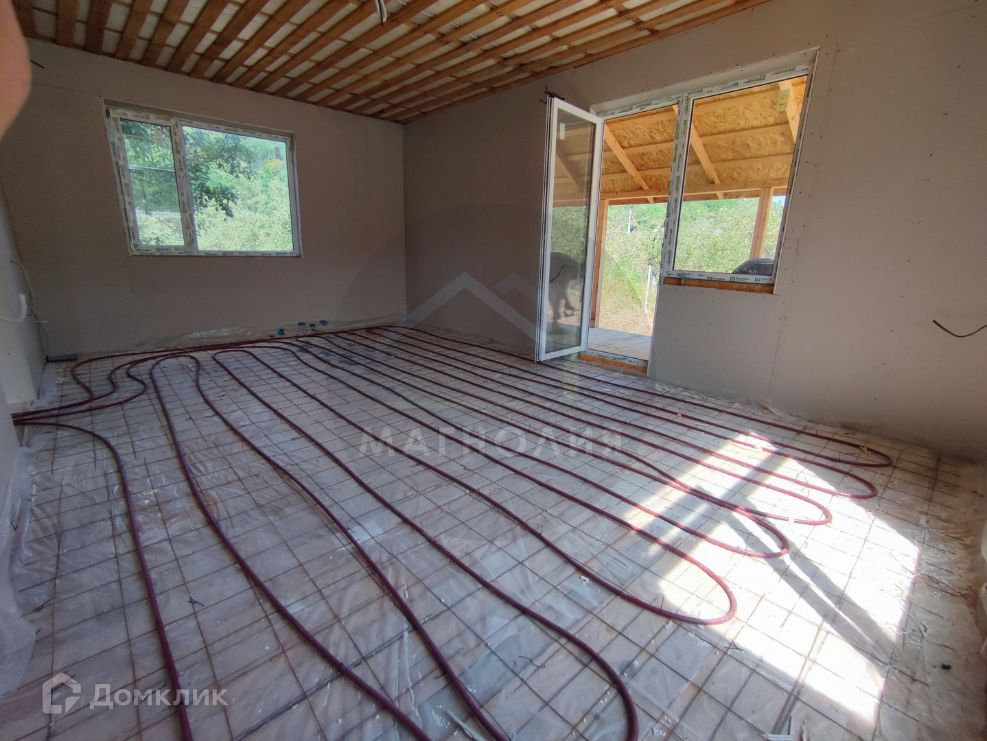 На первом этаже по всей площади дома уложен тёплый пол.
