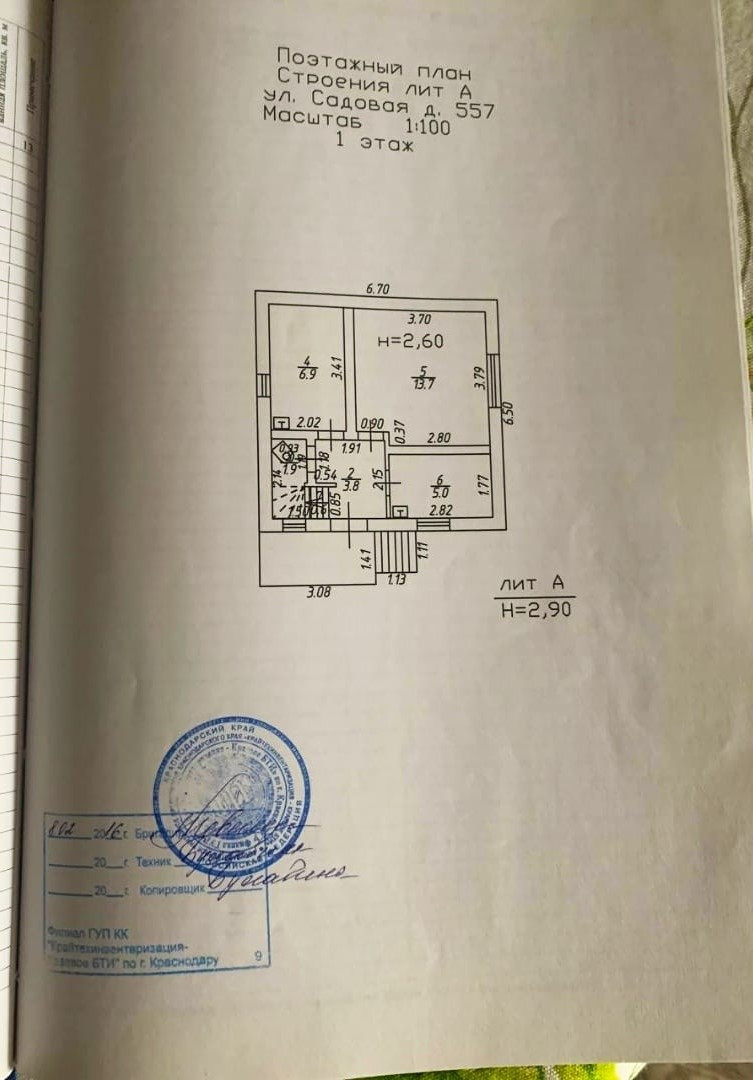 Общая площадь по техническому паспорту составляет: 100 кв.м., жилая 42 кв.м., 1й этаж: сан-узел раздельный баня 6.9 кв.м., туалет 1.9 кв.м., зал 13.7 кв.м., кухонная зона 5 кв.м., коридор 3.8 кв.м., 2й этаж: полноценный две раздельные комнаты 17 и 12 кв.м., балкон.