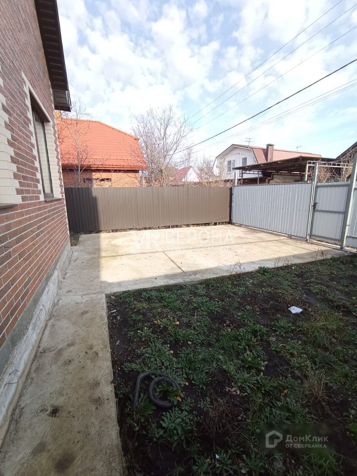 Двор огорожен забором с откатными воротами