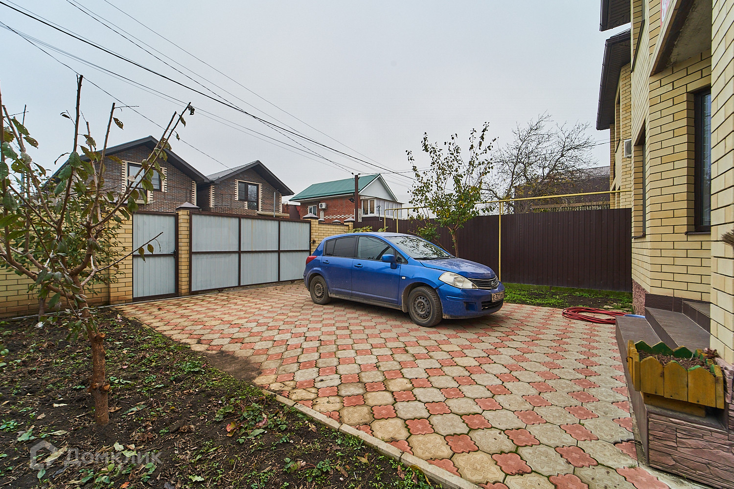 Территория перед домом выложена плиткой.