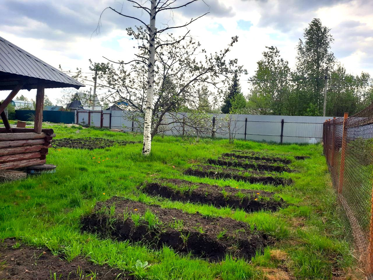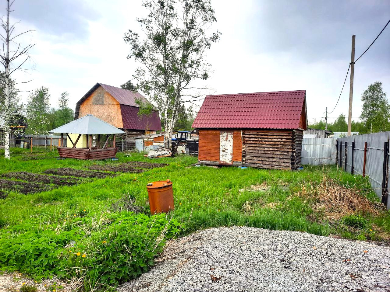 На участке расположен летний душ, сруб 3*3 с верандой под одной крышей, беседка. Участок ровный, сухой, частично обнесен забором. Есть отсыпанное щебнем место для гаража или другой постройки. Разработаны грядки, есть плодовые деревья.