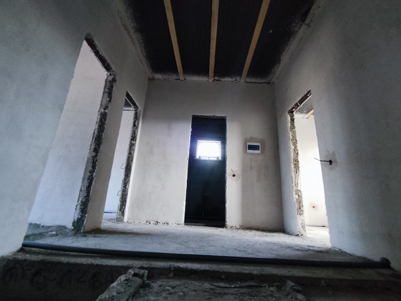В доме — предчистовая отделка: стяжка, штукатура, разводка сантехнического, электрического и отопительного оборудования, теплый пол, радиаторы отопления, двухконтурный газовый котел.