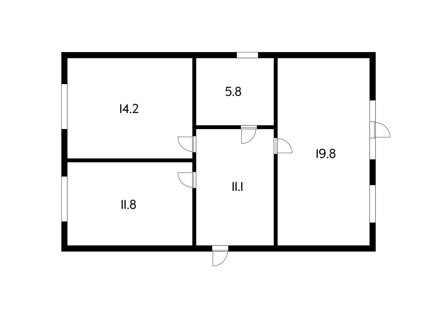 Жилая площадь 66.7 м2