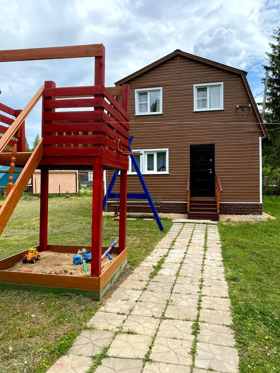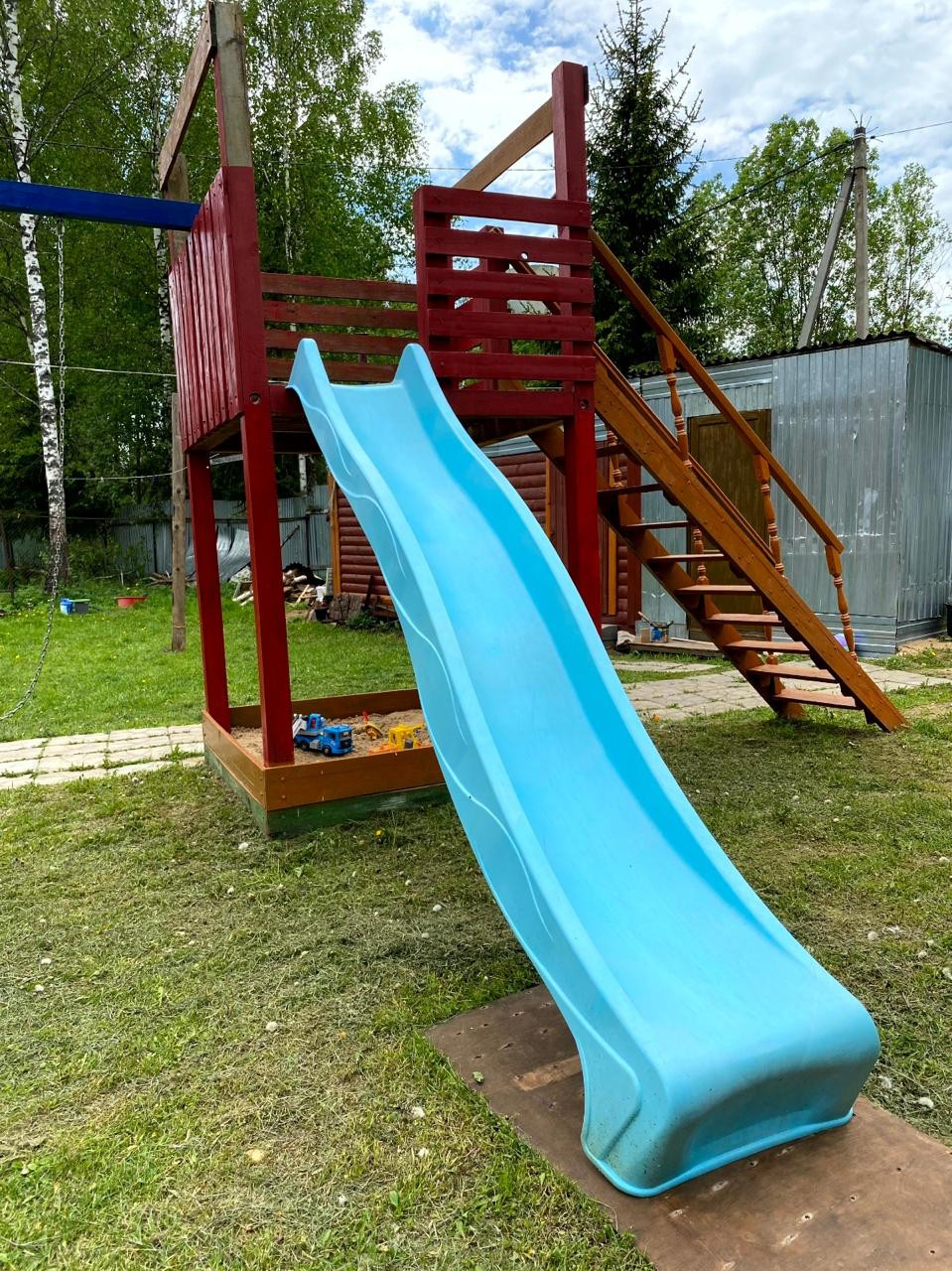 - полноценная детская площадка: качели, горка, песочница;