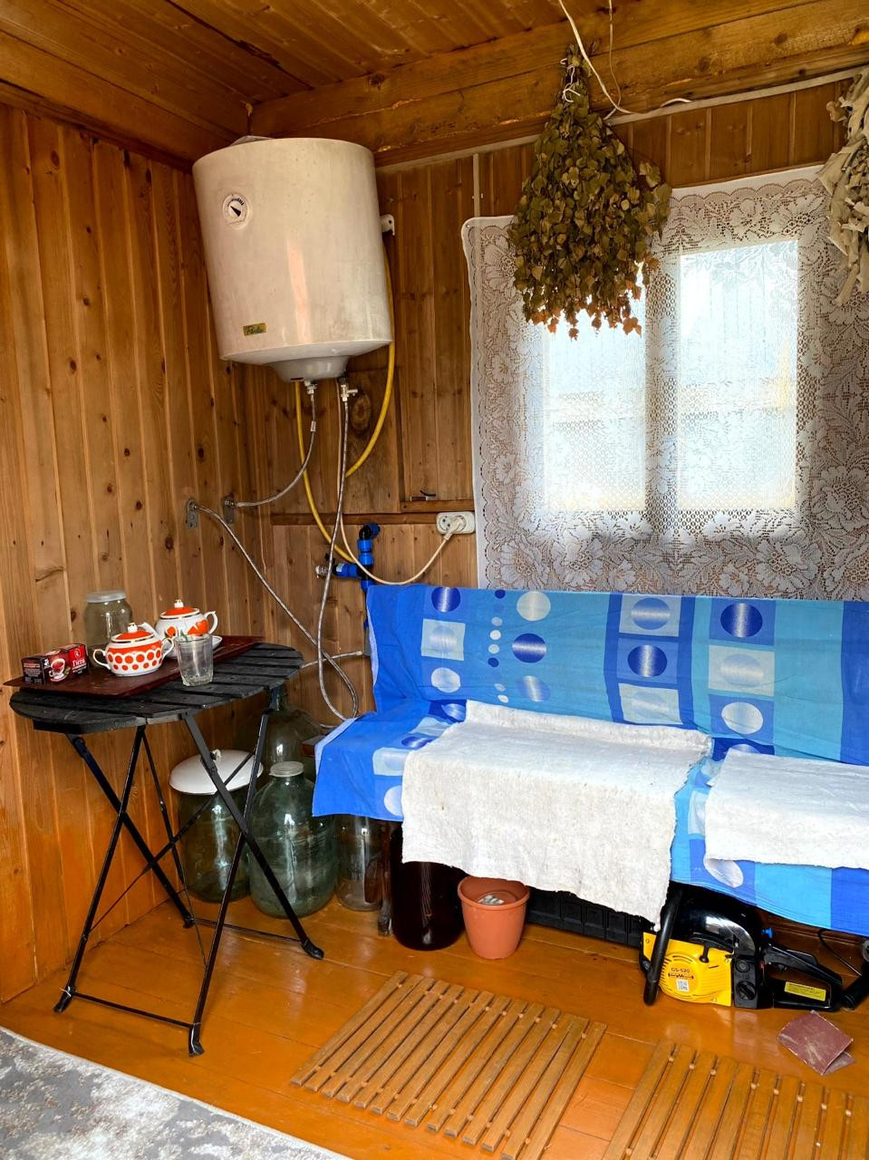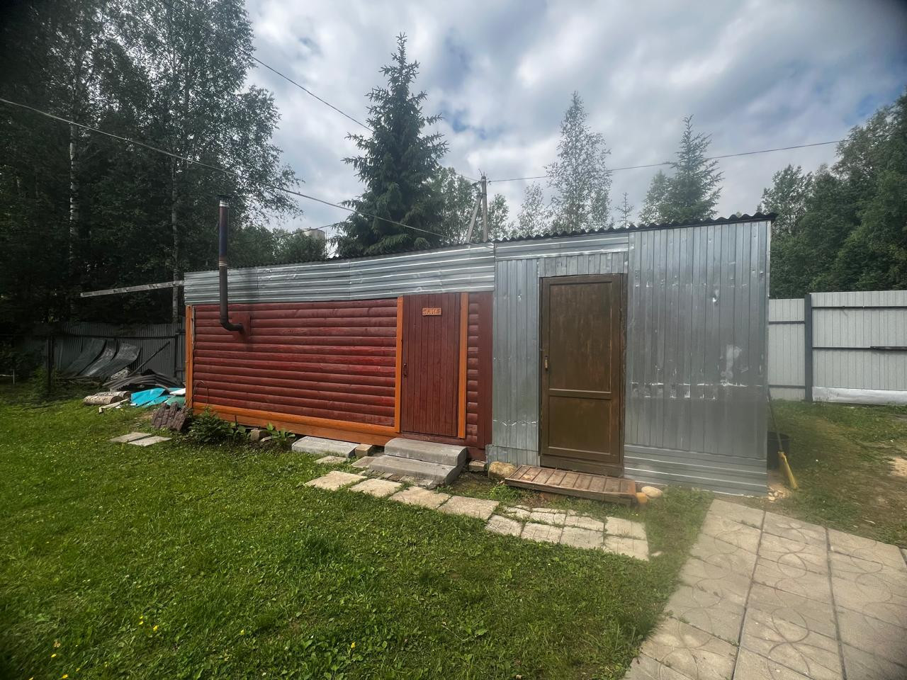 - отдельно стоящая баня с гостевой комнатой, печью-камином;