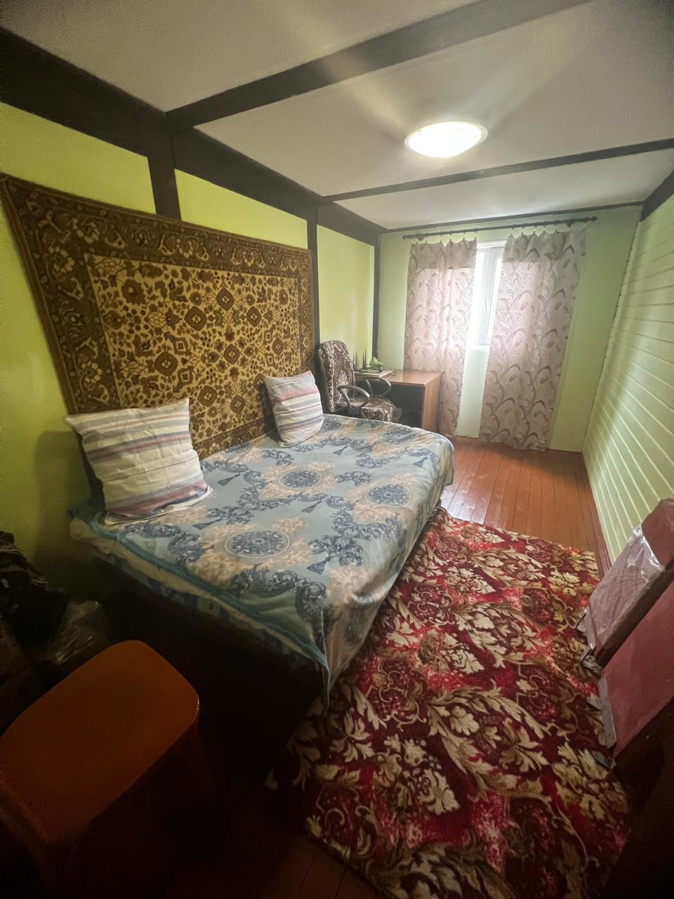 Планировка: 1-этаж – кухня-гостиная, с/узел, холл; 2-этаж – три спальные комнаты. Коммуникации: электричество, отопление печное и электрическое, канализация – септик, вода (горячая + холодная) заведена в дом из скважины от СНТ, газ - баллоны. Дом оборудован всей необходимой мебелью, кухней, бытовой техникой (холодильник, газовая плита, чайник, посуда и т.д.). С/узел с душевой кабиной, унитазом, стиральной машиной, горячая вода через бойлер на 150 л.