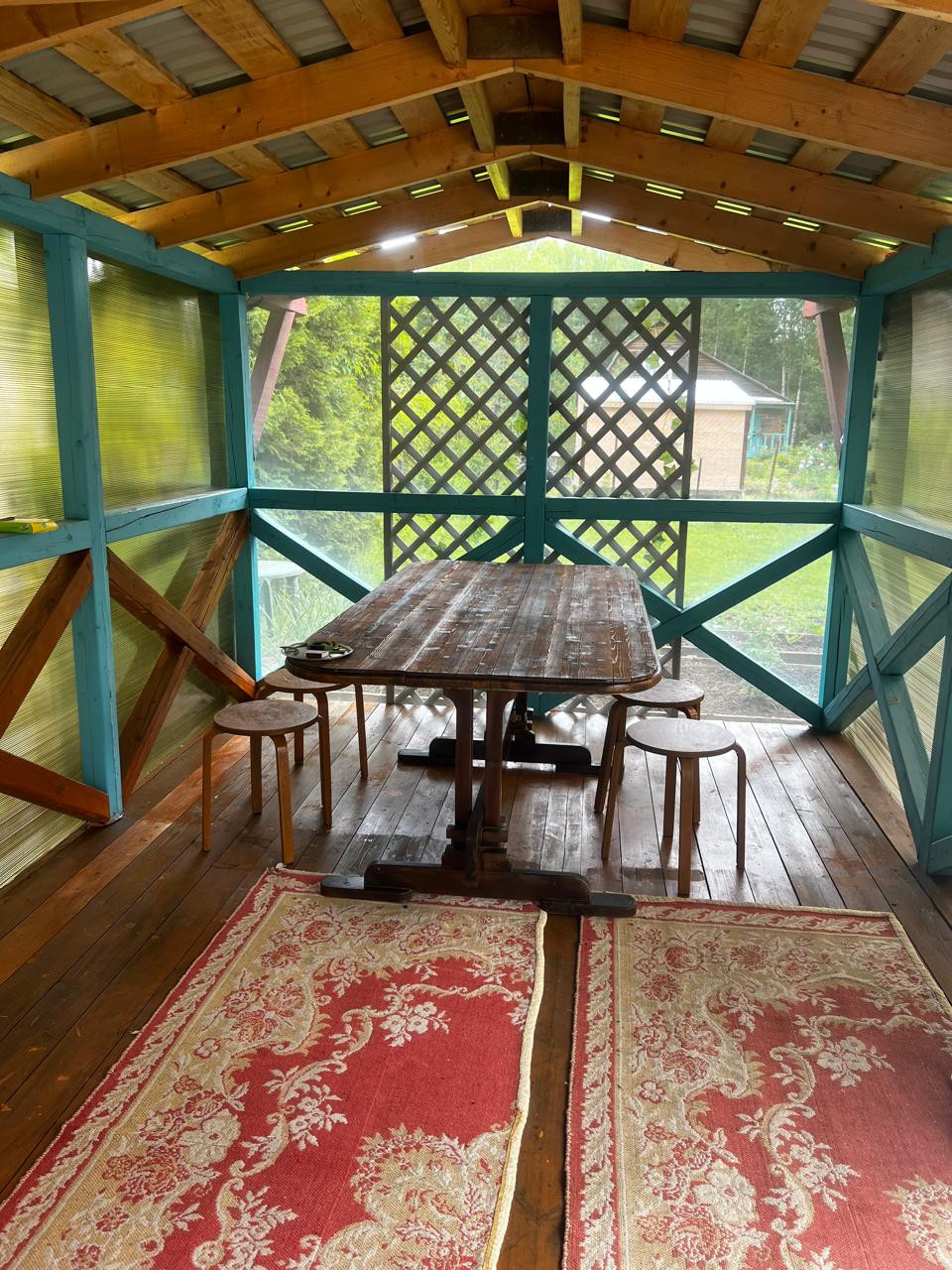 - большая беседка из бруса 3х6 м. с зоной барбекю;