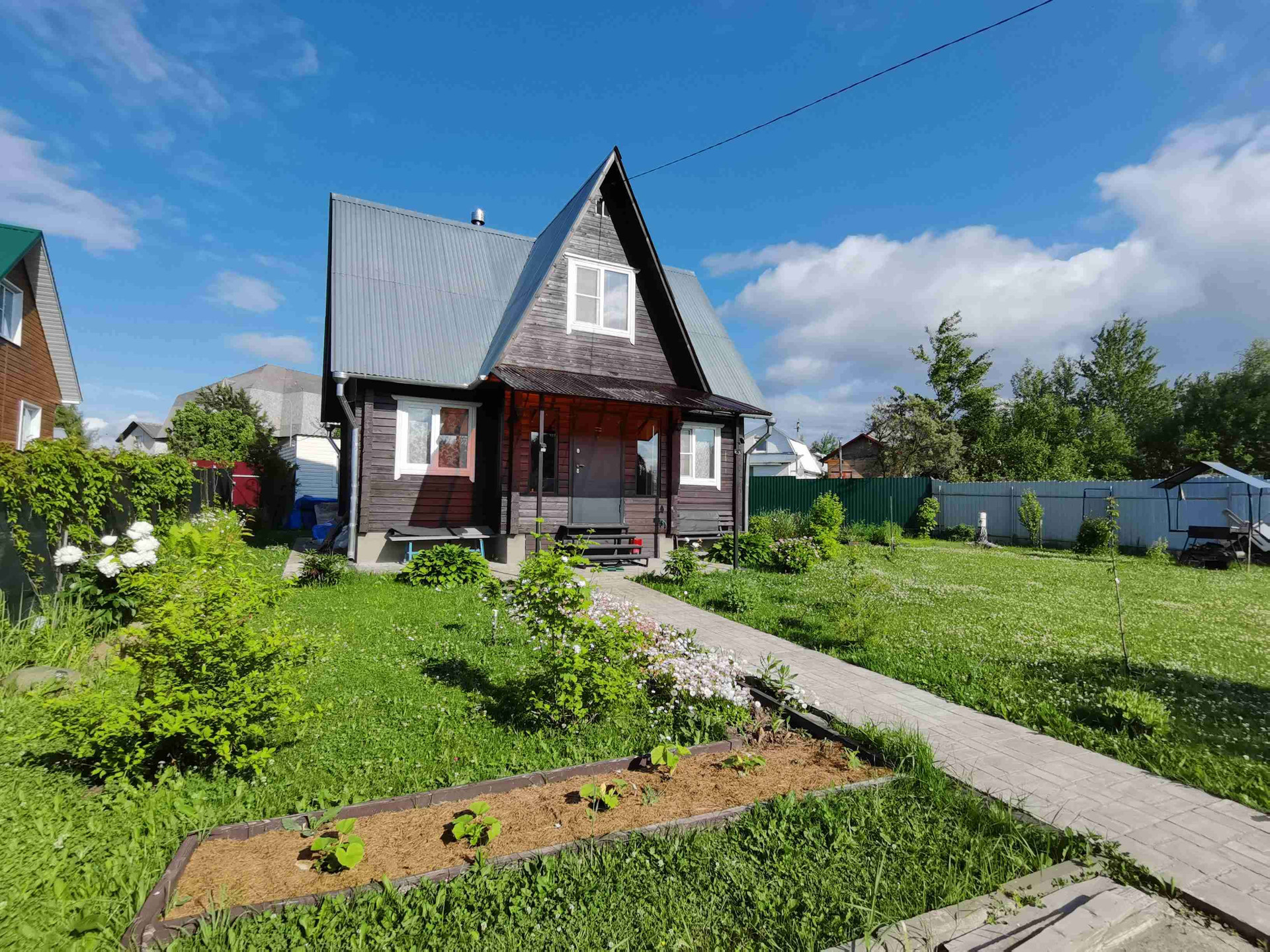 Продается дача 6 соток с домом 75 м2  (6*7м). В доме первый этаж брус 150*150, 2 этаж утепленная щитовая мансарда. На первом этаже прихожая зона, кухня-гостиная, спальня, санузел, на мансарде большая зона отдыха, при желании можно сделать две спальни. Коммуникации: водоснабжение (скважина собственная), в доме электрический бойлер для горячего водоснабжения, канализация (септик), отопление печь – камин Мета Марта и по 1му этажу разведены каменные электрические конвекторы HEAT STONE.