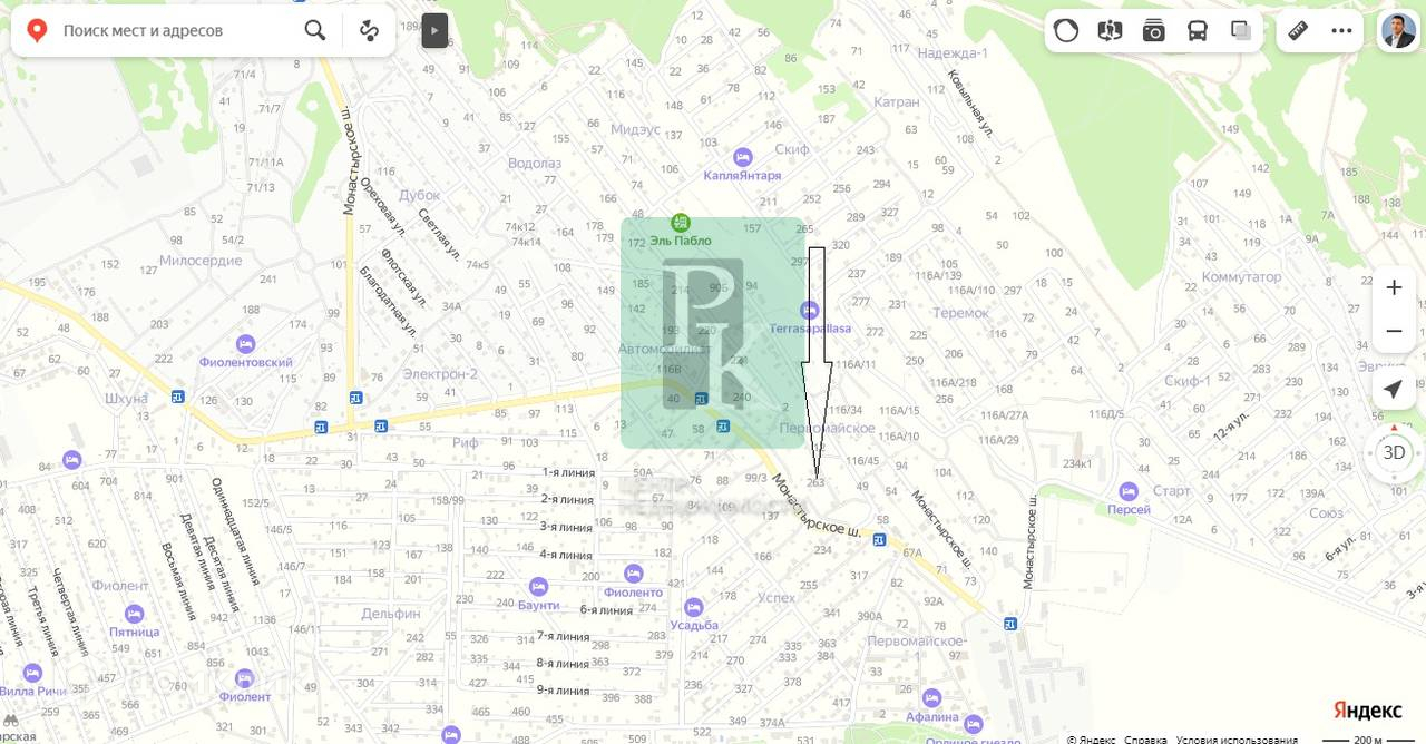 Кооператив закрытого типа, от асфальта и по грунтовке протяженность 100 метров, до остановки общественного транспорта 150 м, до кафе и магазина 250 метров, до моря 600 метров.