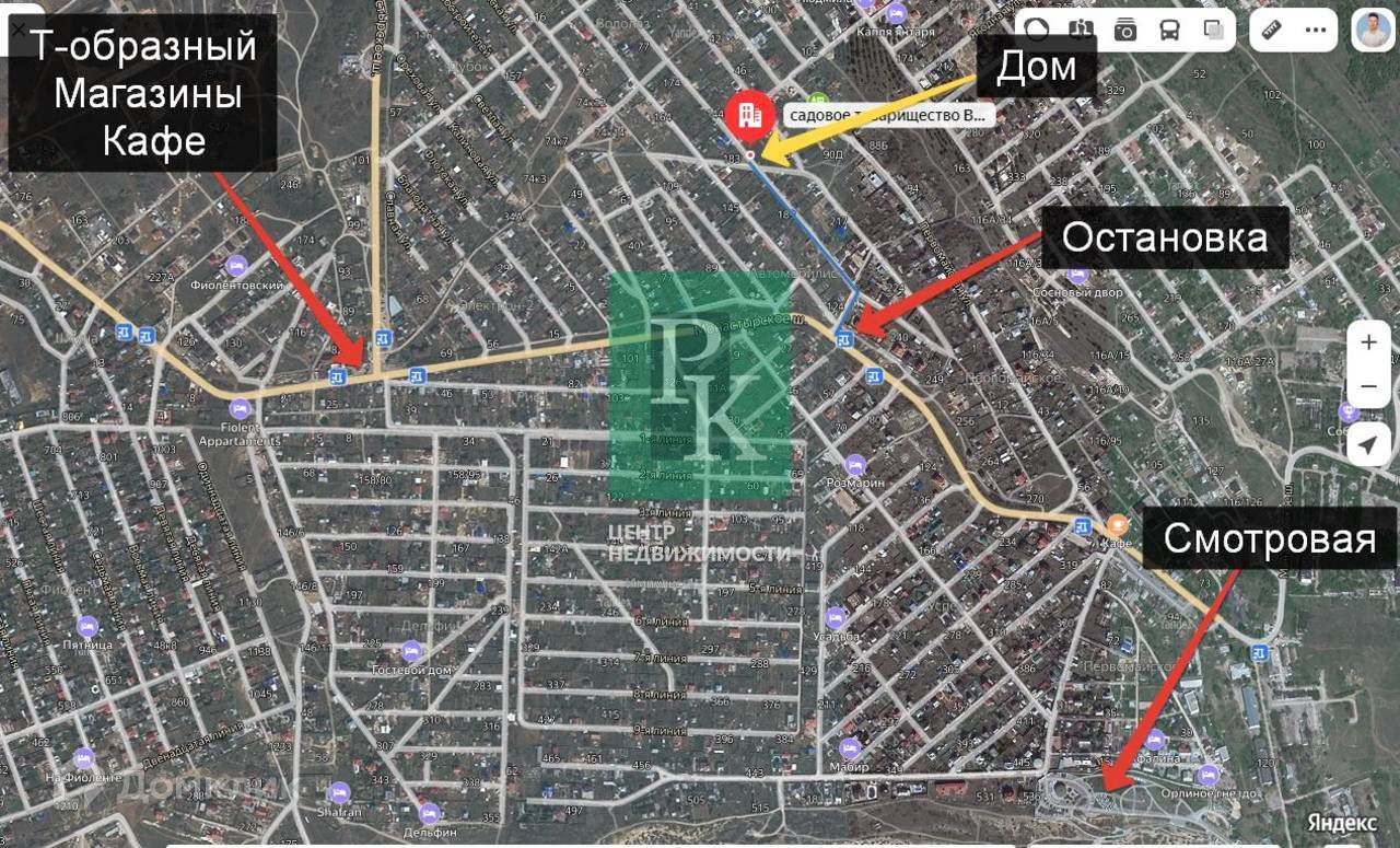 Дом находится на мысе Фиолент, в развитом и комфортном для жизни районе. Остановка общественного транспорта находится на расстоянии не более 400 м, откуда вы можете быстро доехать до любого района города. Рядом расположены продуктовые магазины, ресторан “Фиолент”, галечные пляжи, смотровые площадки, детский бассейн, церковь, парки и др.