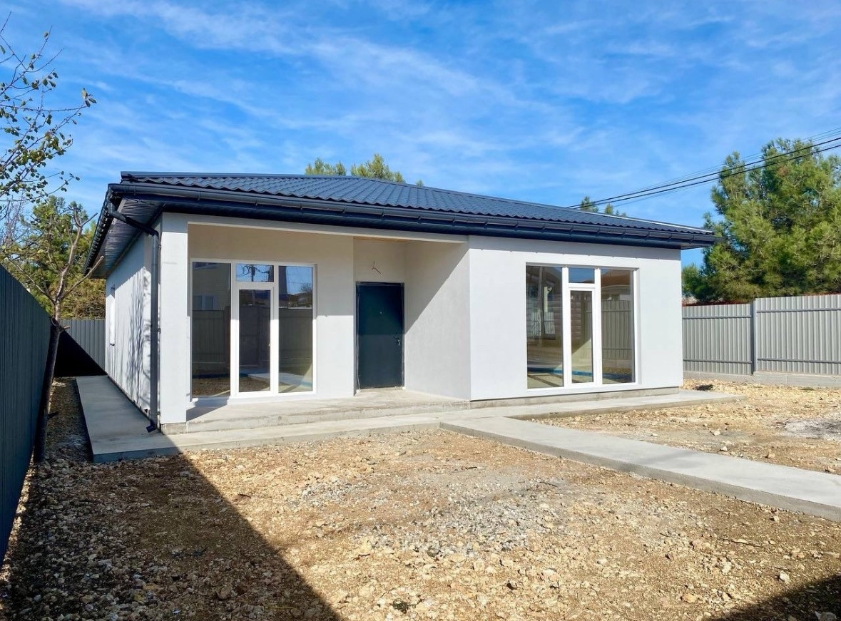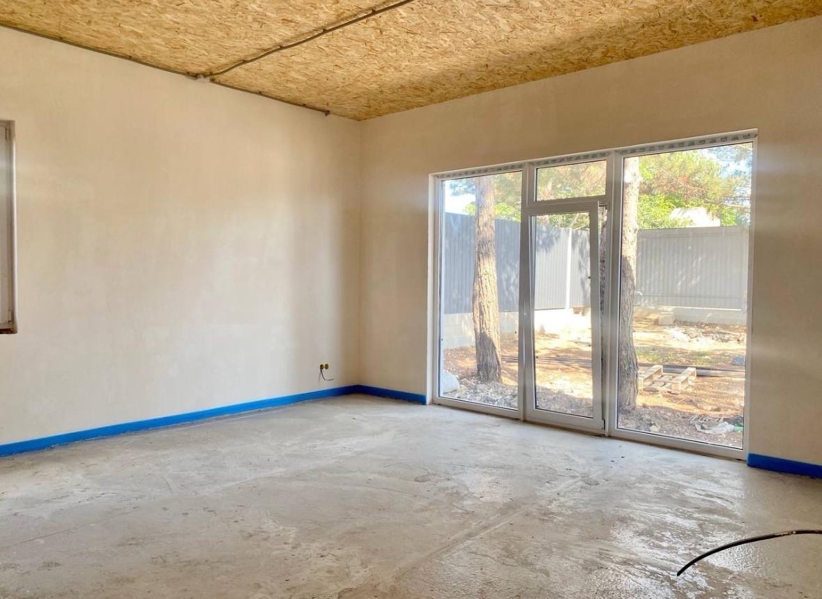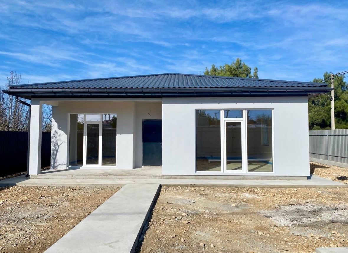 Дом  оптимальной площади-120м2, одноэтажный, из газобетона, с отделкой фасада, предчистовой отделкой стен, разводкой света, воды, теплым полом, септиком, площадкой под авто, забором и откатными воротами- максимальная предчистовая комплектация.