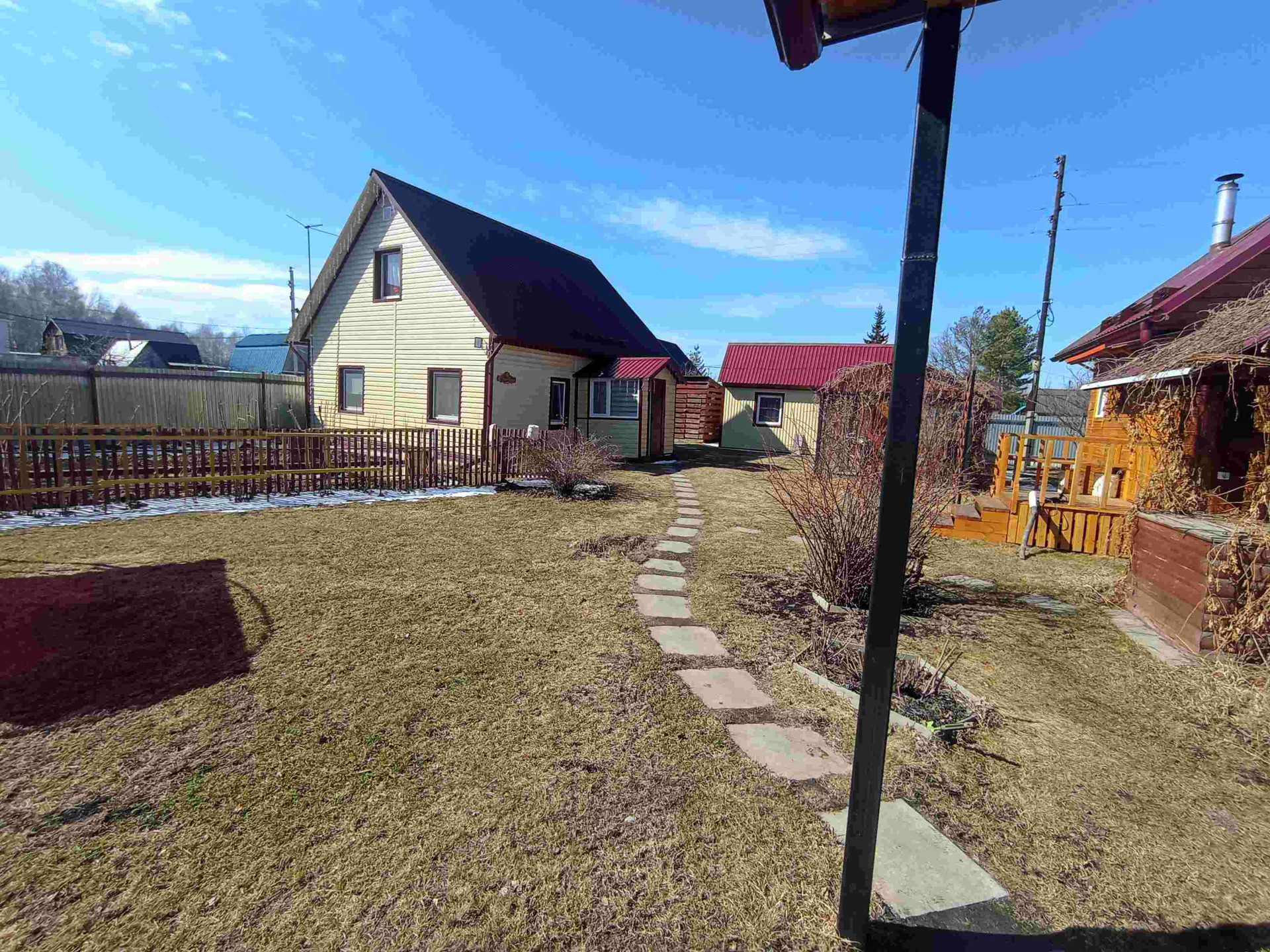 На участке имеется новая баня, гостевой домик, беседка, хоз постройки, навес для два места авто, колодец.Видеонаблюдение.