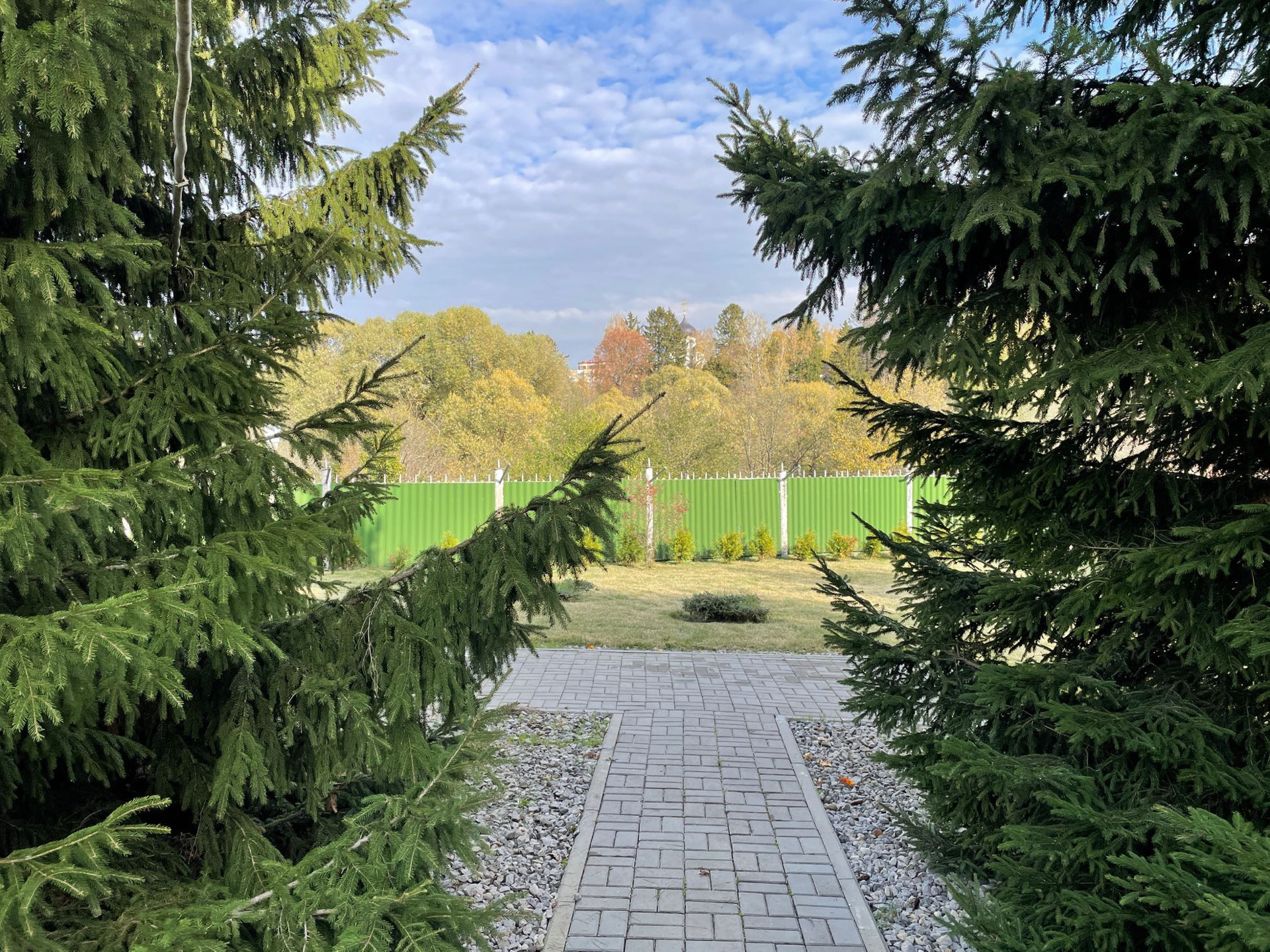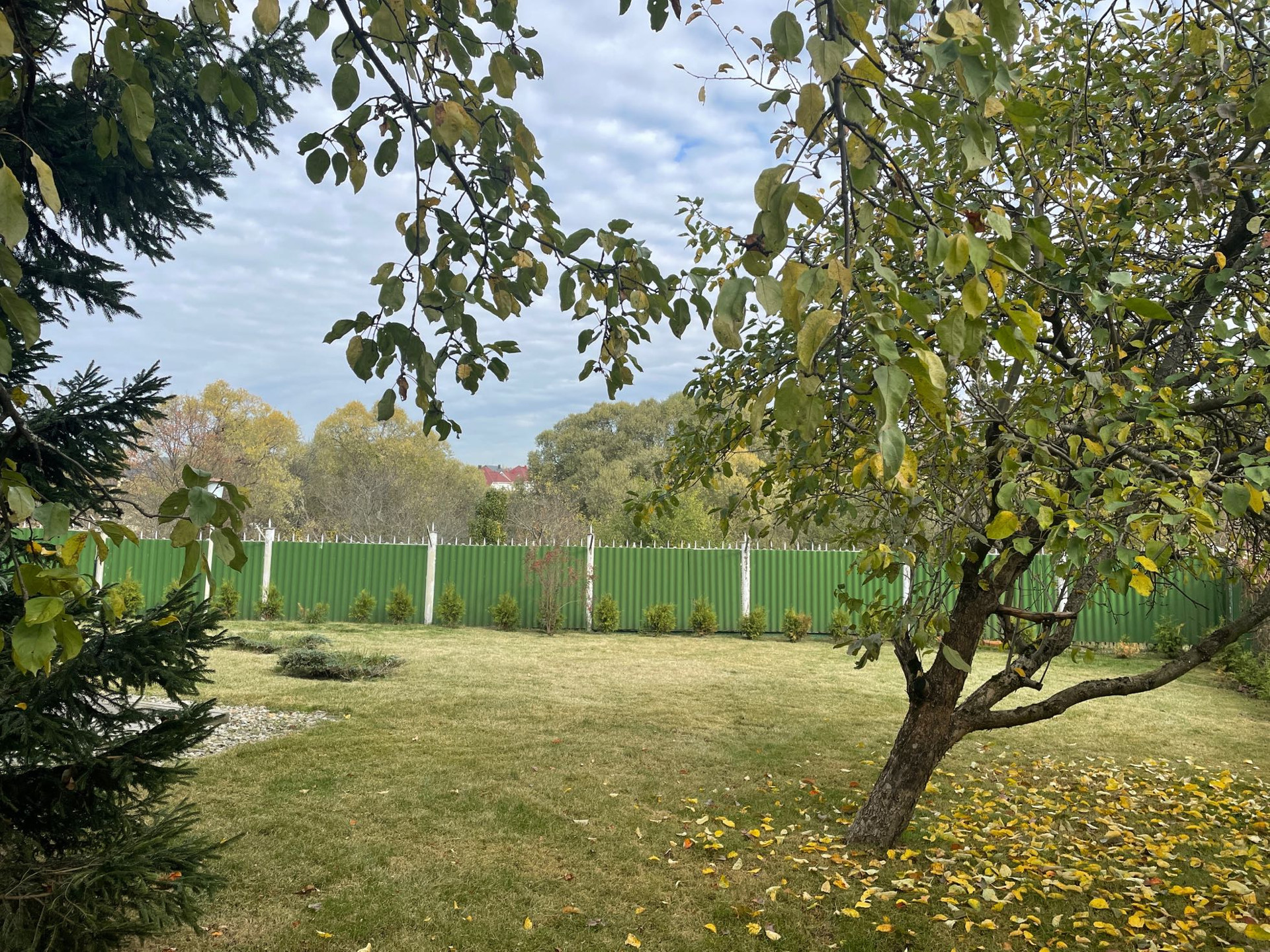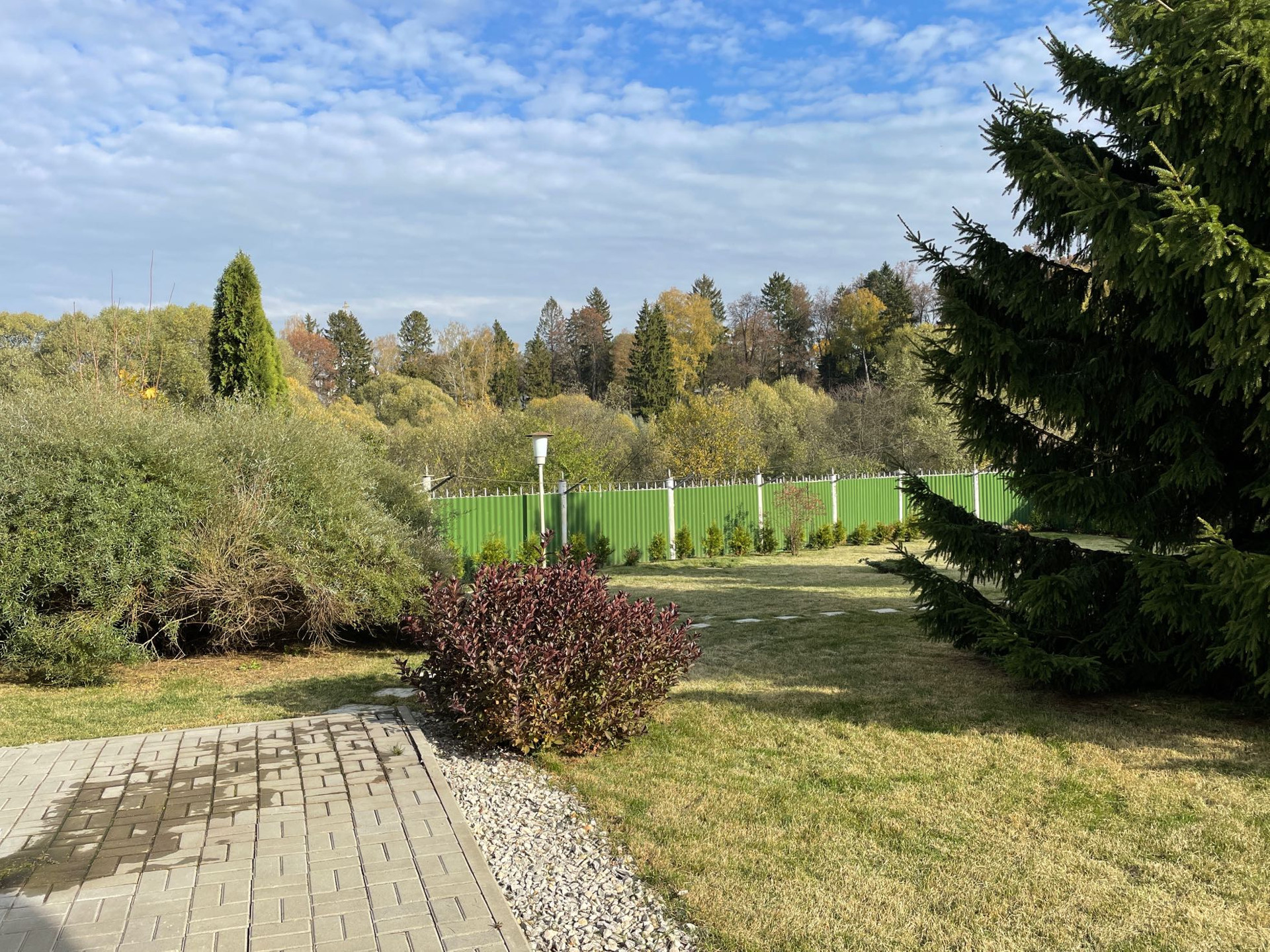 Одно из больших преимуществ участка в том, что через небольшую дорожку он граничит с лесопарком, с участка и особенно из дома открываются шикарные виды на природу.