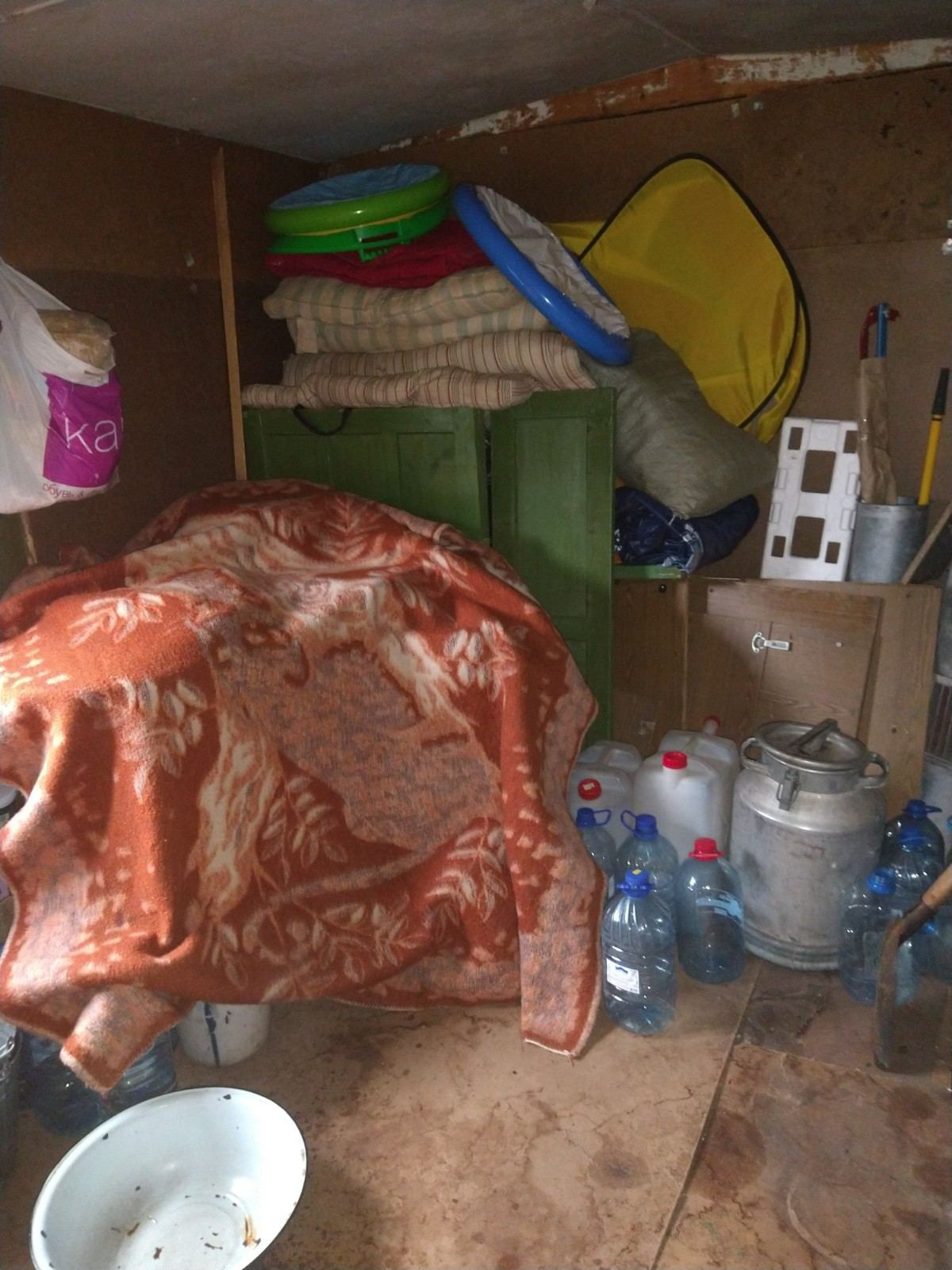 Воды нет! (Вода привозная с чистого ручья возле берега.)