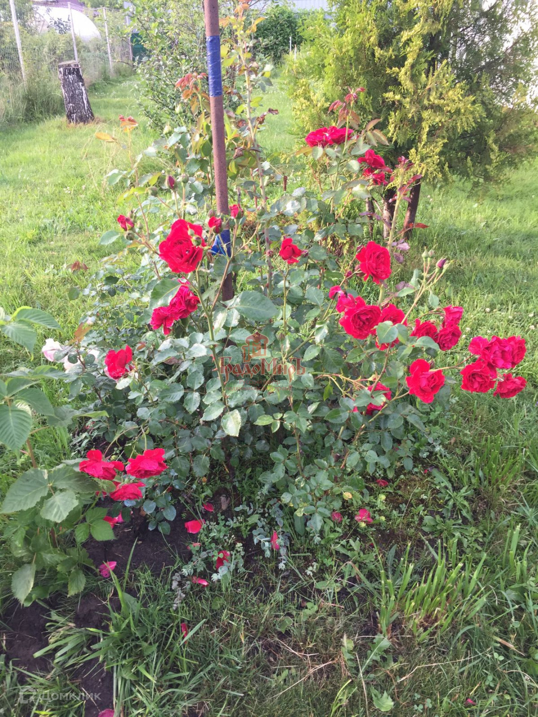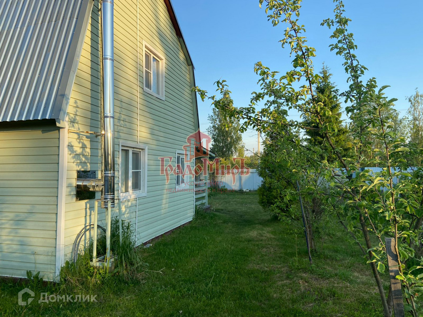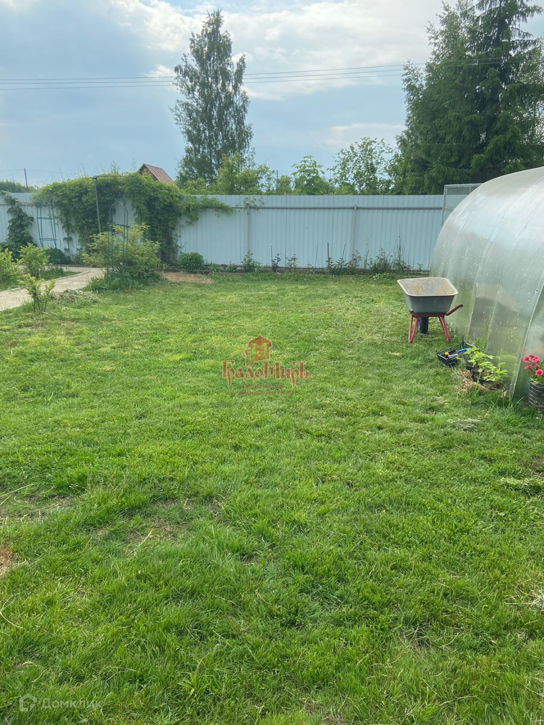 12 соток, широкий, прямоугольной формы, ухоженный, полностью огорожен забором с откатными воротами. На участке газон, сосны, березы, плодовые деревья, кустарники, цветы.