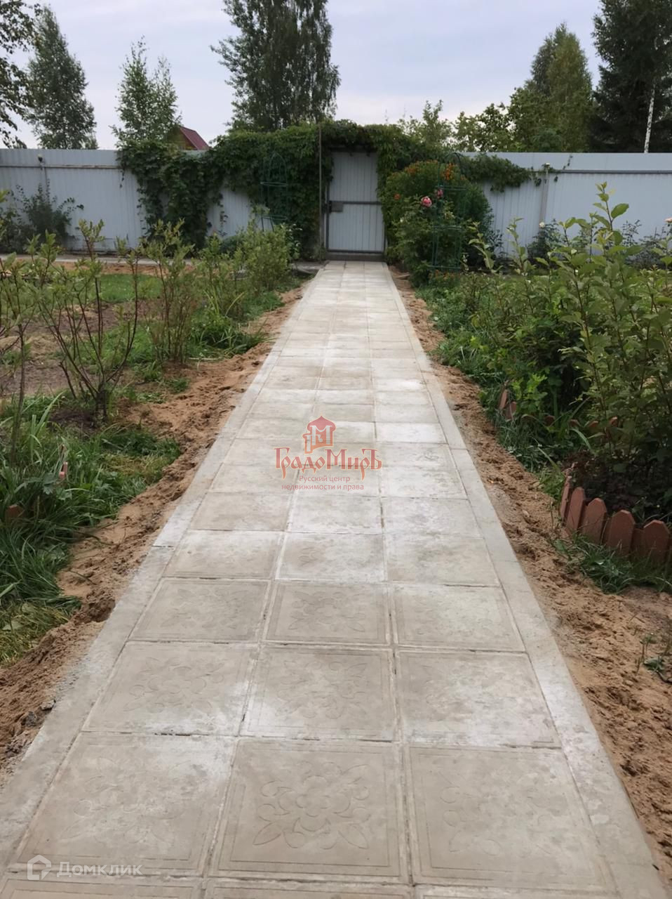 По всему участку выложены дорожки из плитки.