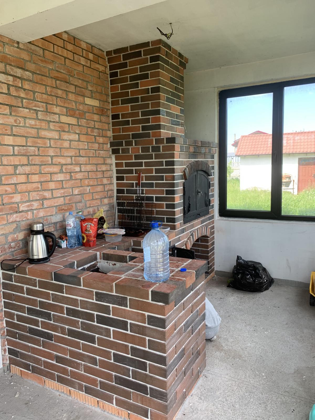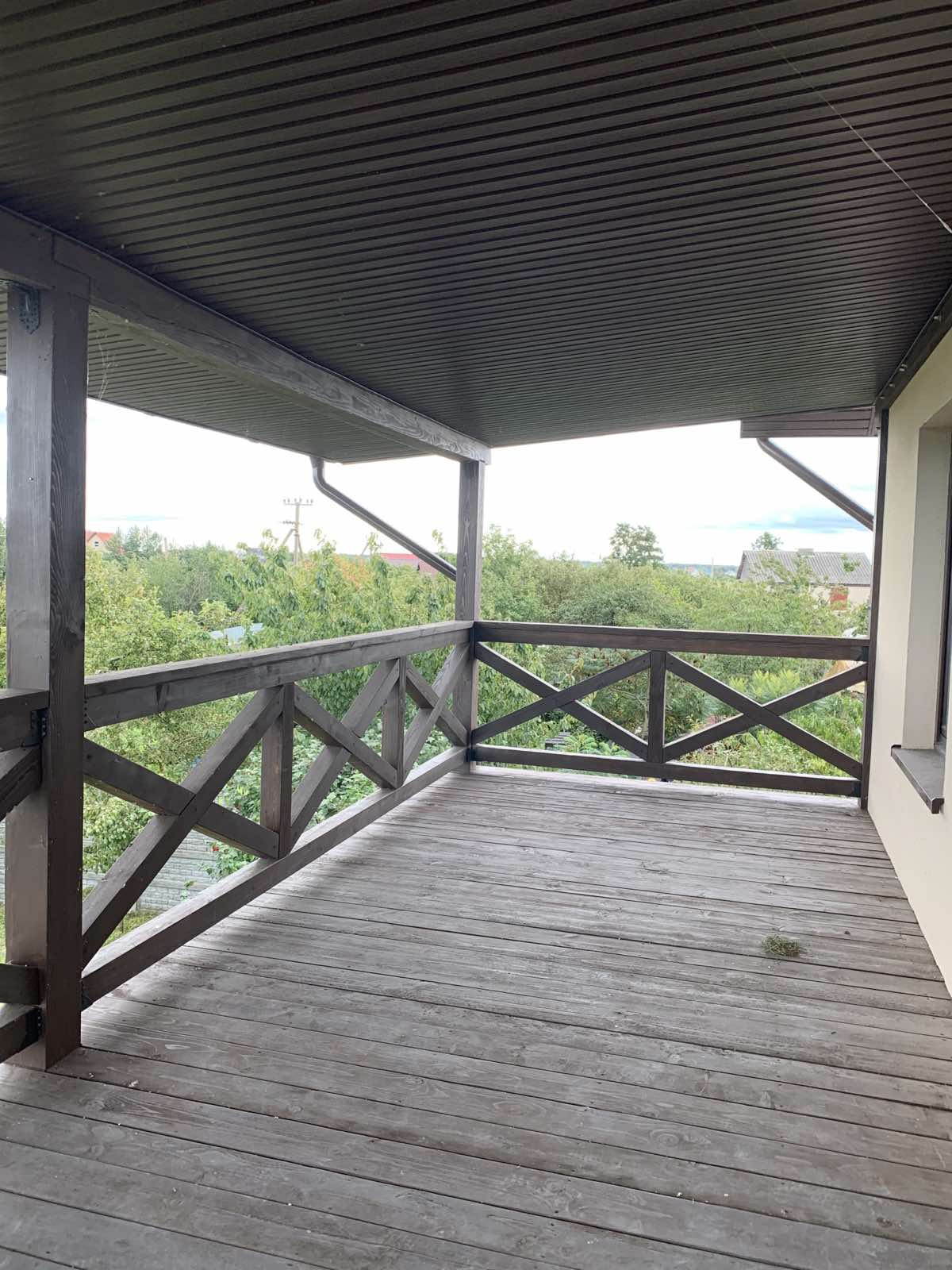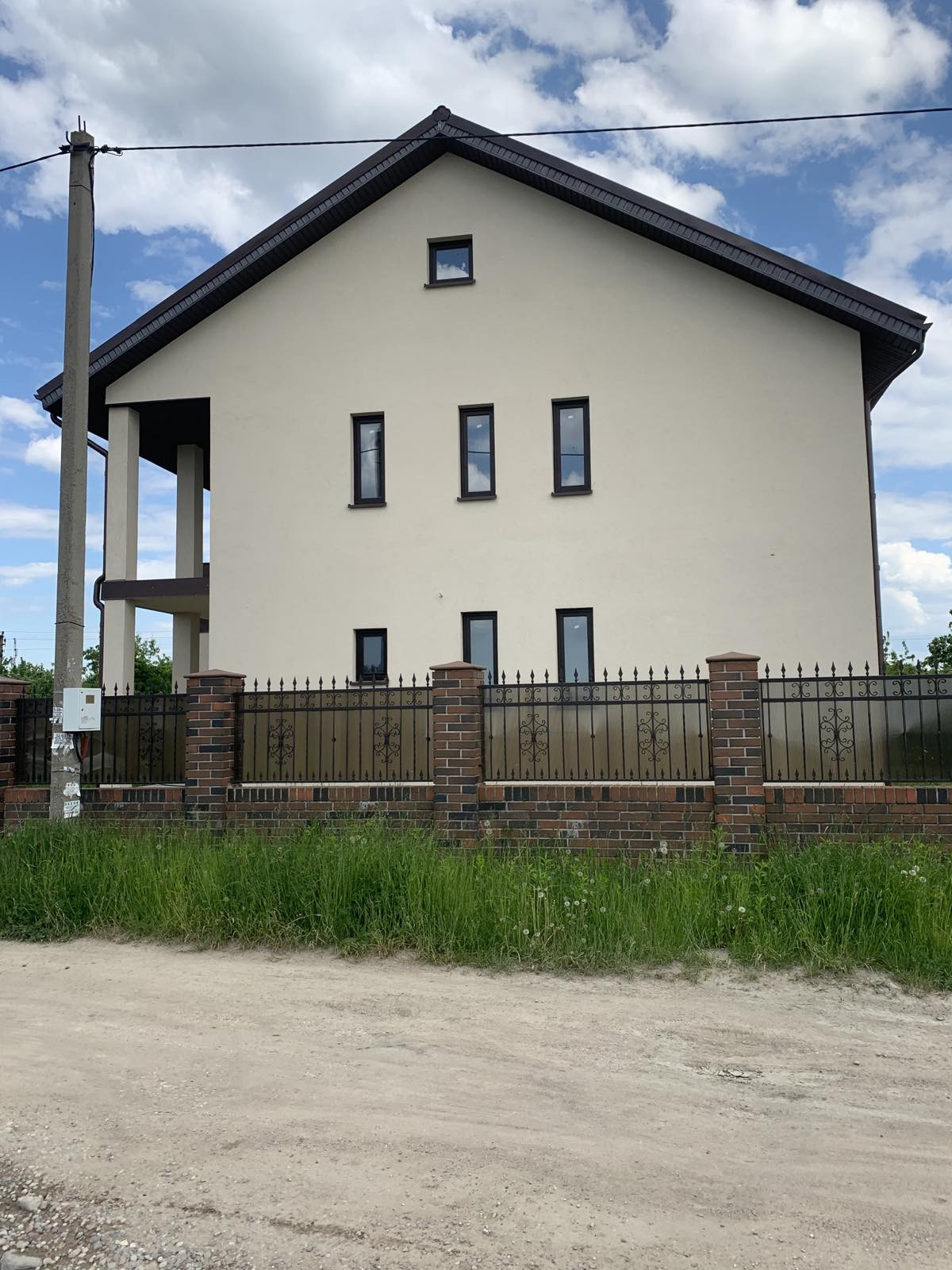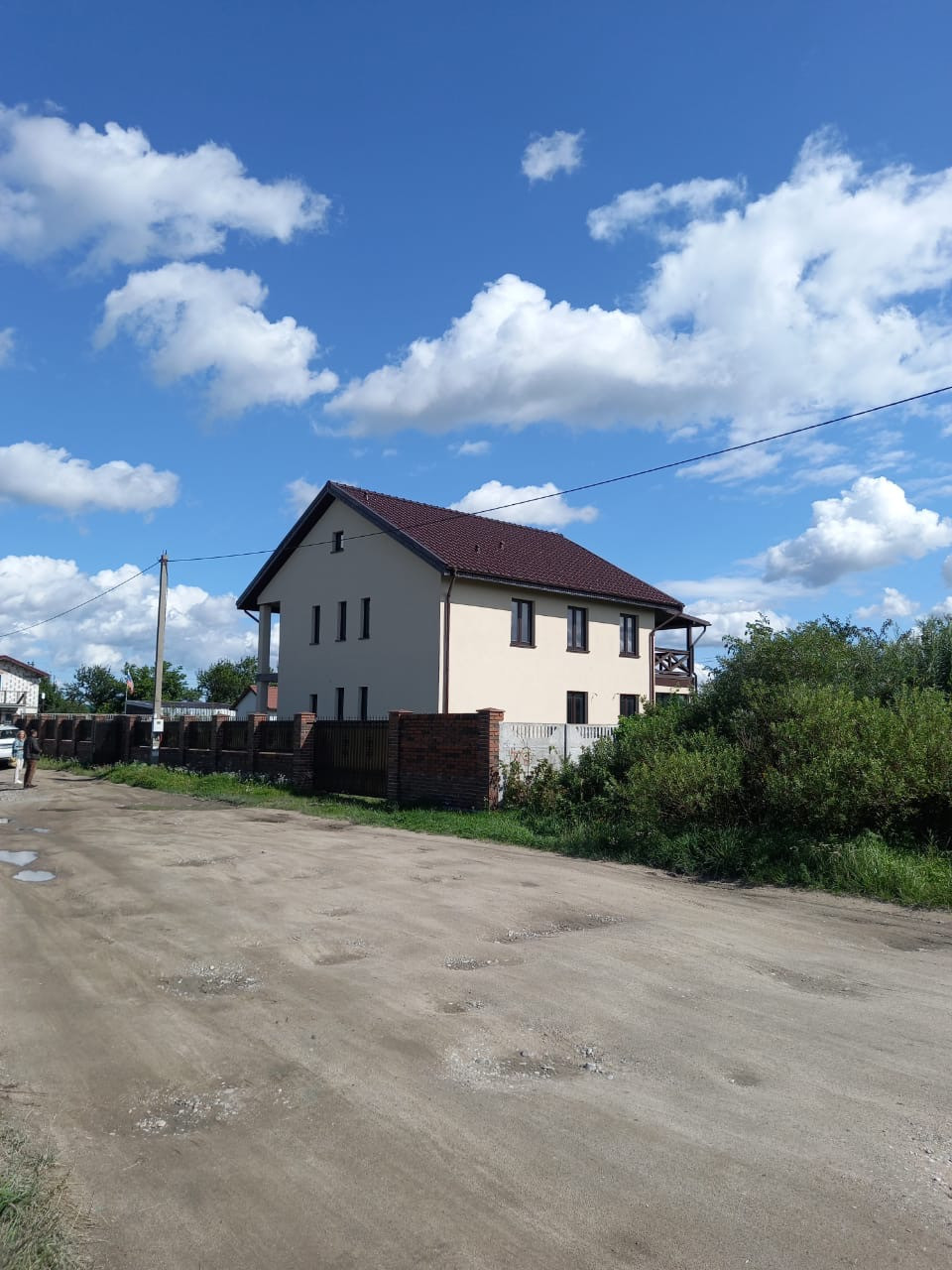 Дом современный, с зимней и летней террасами, выполнен из газосиликатных блоков 300 мм с утеплением 80 мм базальной ватой, оштукатуренный цветным короедом 2,5 мм. Крыша - немецкая черепица с водосточной системой, мансарда утеплена и обшита деревом. Внутренняя отделка – под "серый ключ", чистовая стяжка пола (утепление, гидроизоляция).