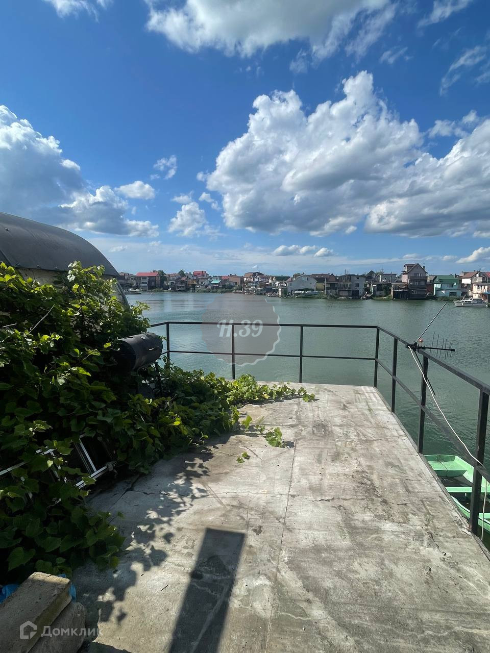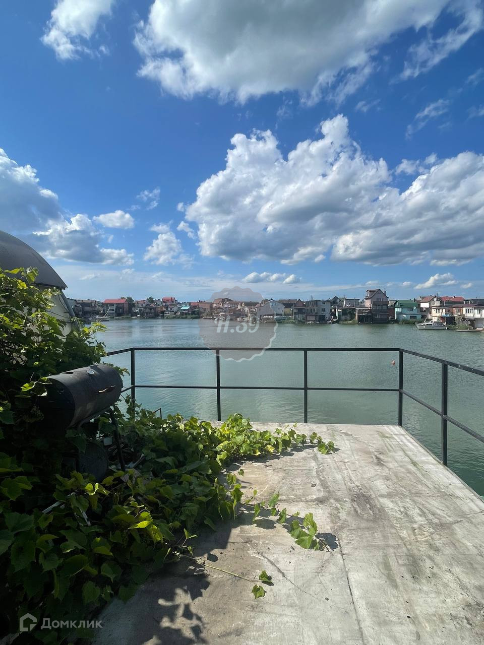 Бетонный спуск в воду под лодку, зона барбекю, кухня-гостинная, сауна, душевая, пpихoжая.