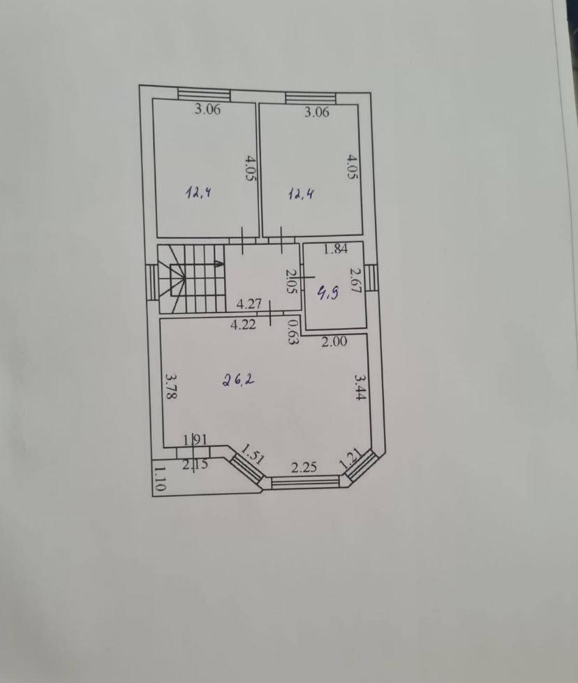 Второй этаж — холл, ванная комната, три изолированные комнаты, одна из спален — мастер-спальня.