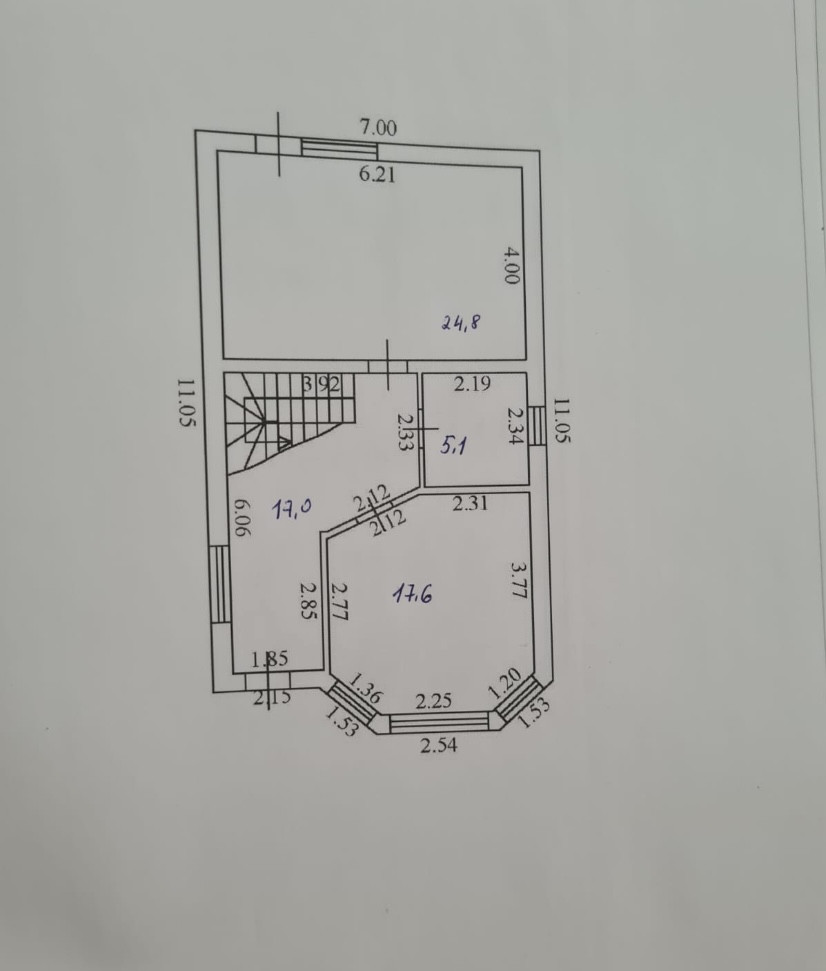 Коттедж общей площадью 135 кв.м грамотной планировки: первый этаж — просторный холл 17 кв.м, совмещенный санузел, изолированная комната 17,6 кв.м, кухня-гостиная 24,8 кв.м с выходом на задний двор.