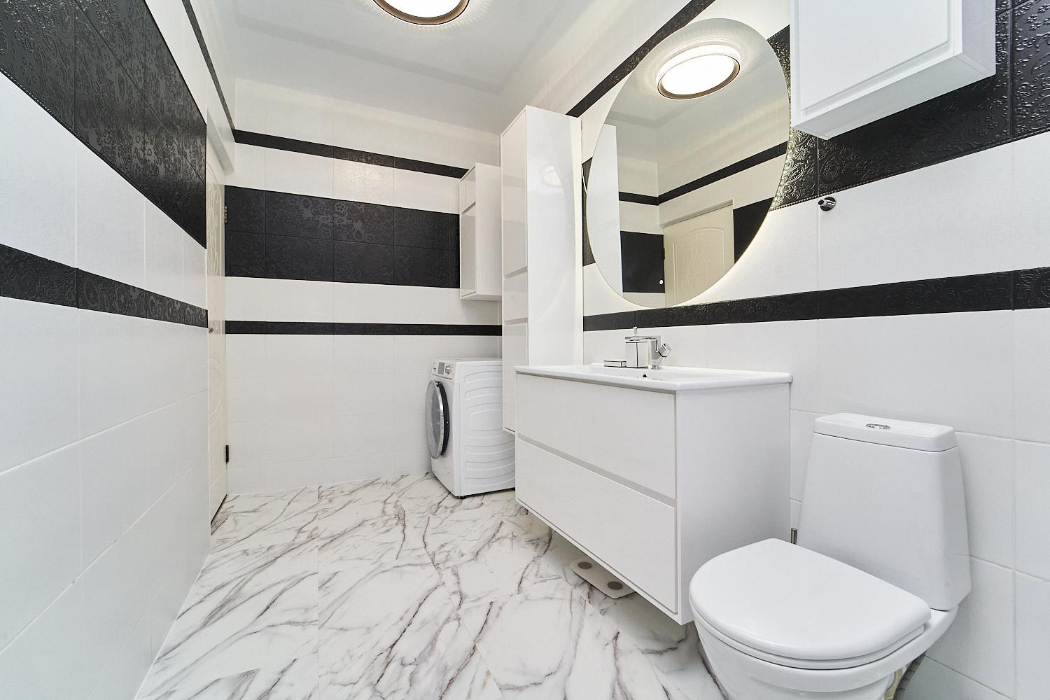 Кухня и ванные комнаты оборудованы качественной бытовой техникой брендовых производителей. Остается абсолютно всё.