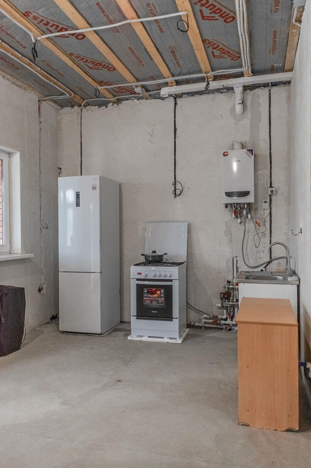 Площадь 96,5 кв. м. Построен по технологии монолит-кирпич. Очень комфортная планировка: 4 спальни, зал, кухня, гостиная, раздельный санузел. Сделана качественная предчистовая отделка, разводка электричества. Установлены счётчики, радиаторы отопления, металлопластиковые окна, входная дверь.