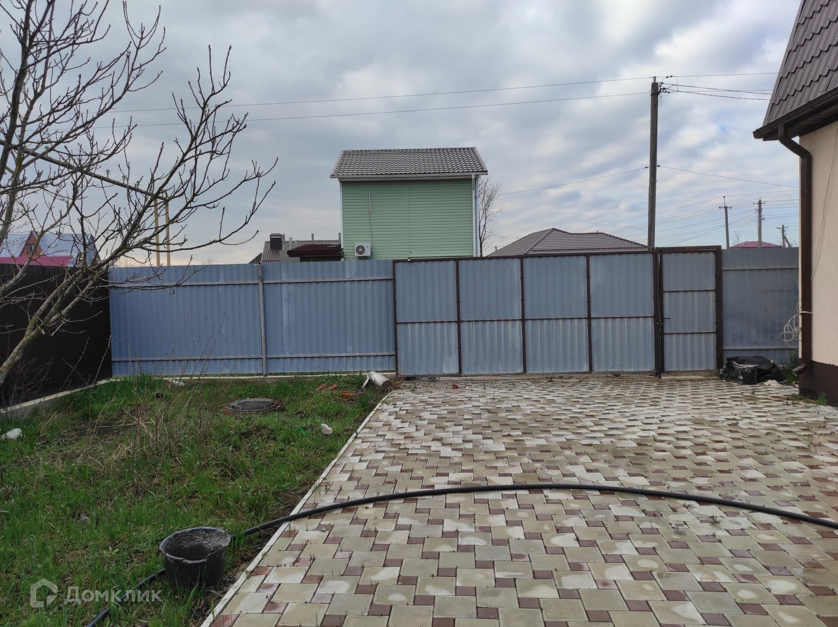 На участке плодовые деревья, установлен новый забор с откатными воротами.