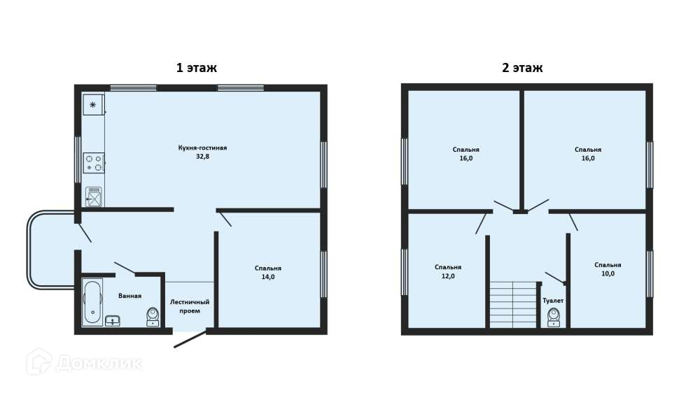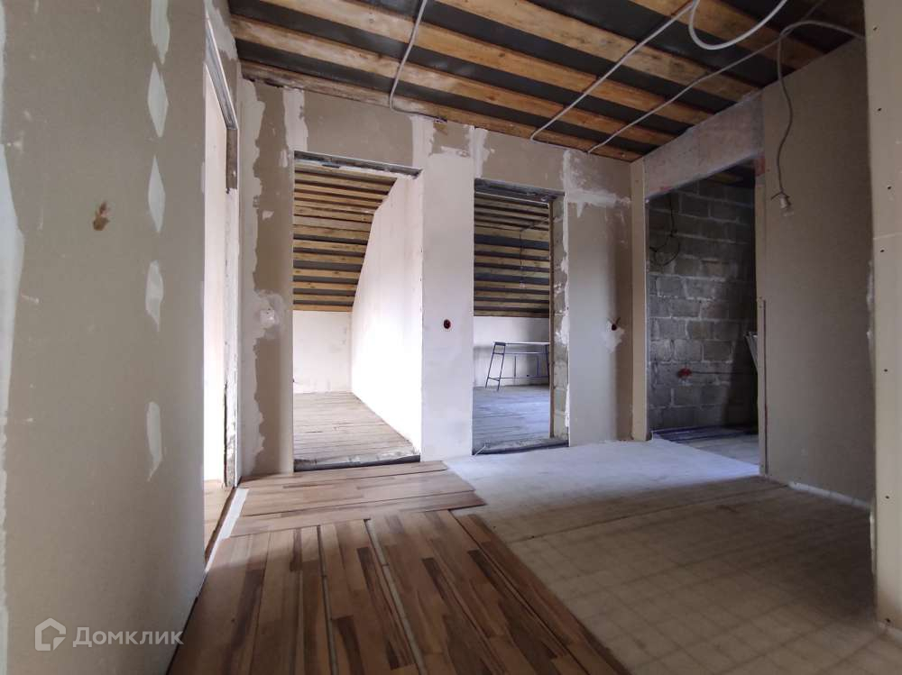 На 1 этаже просторная кухня-гостиная (32,8 м2) , комната и с/у. На 2 этаже 3 комнаты , гардеробная и с/у.