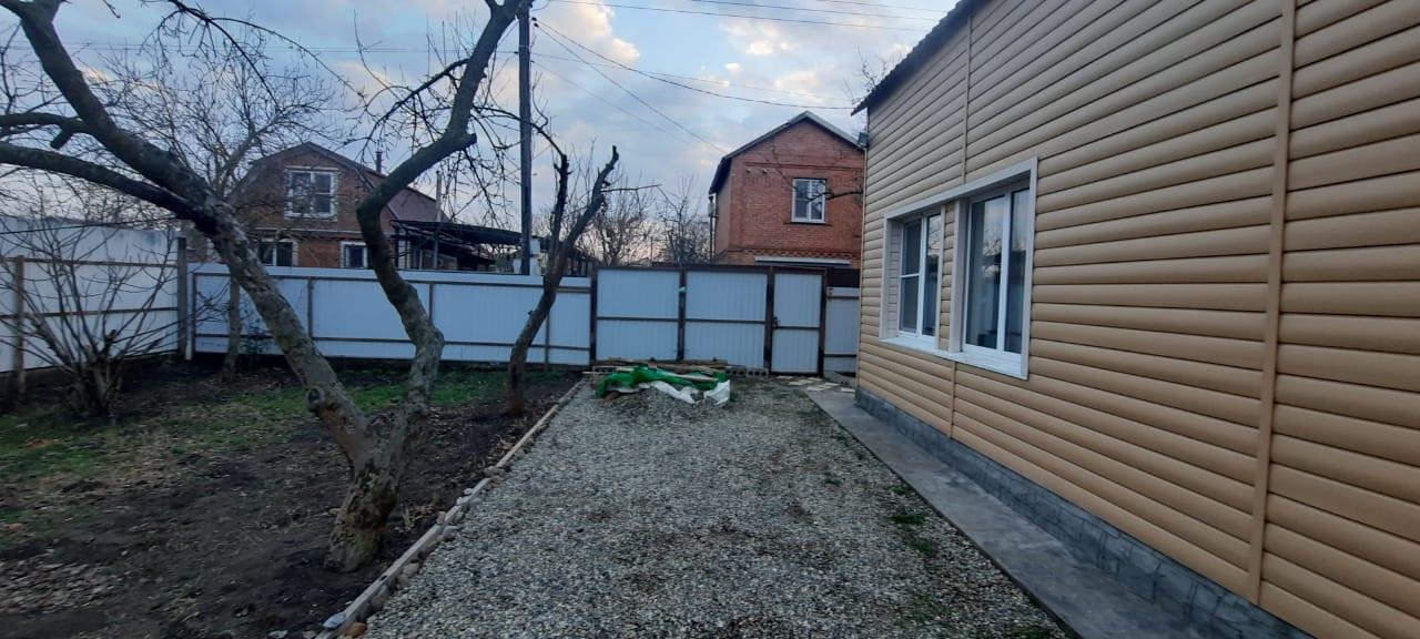 Продам уютный дом в 15 минутах от центра Краснодара. В дом заведен сетевой газ, новое отопление и теплый пол, санузел в доме. Дом кирпичный обшит сайдингом. Участок с очень широким фасадом, можно построить еще 1 дом. Практически до дома асфальтированная дорога. При продаже остается все что на фото. Подходит любой вид оплаты, в том числе Херсонский сертификат.