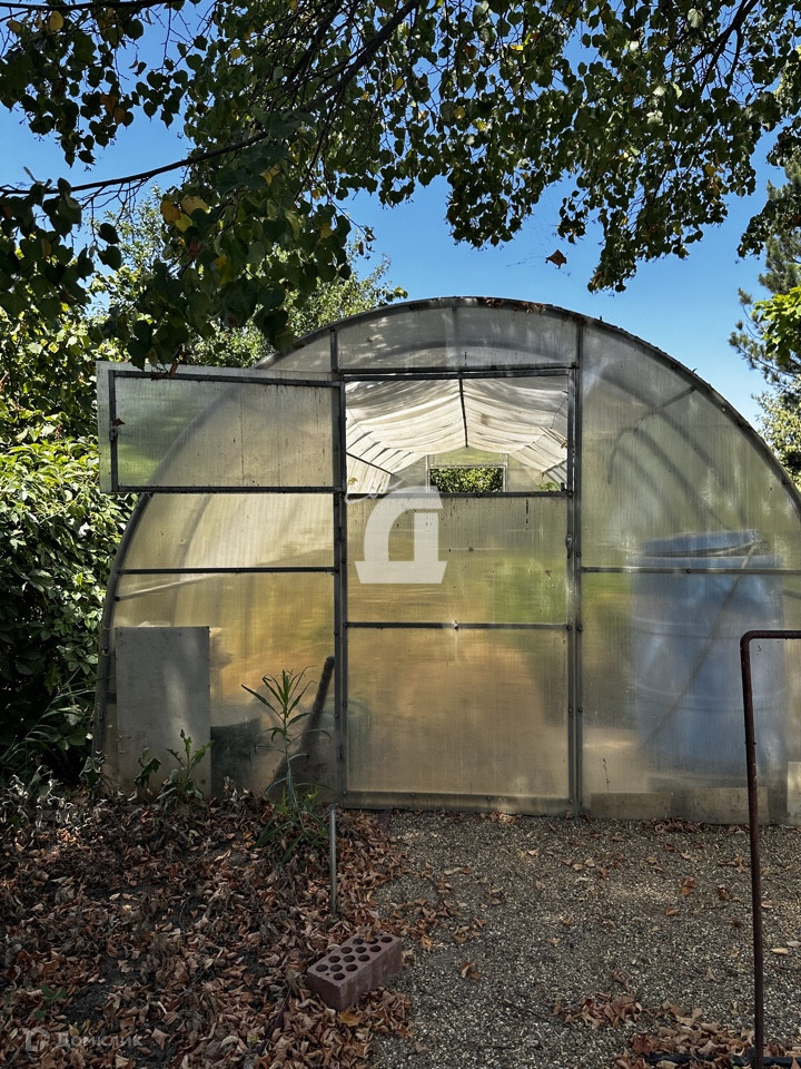 Теплица выполнена  из поликарбоната. Имеется накопительный бак для воды.